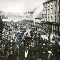 This image of Cornmarket Street in the city of Cork dates from about 1900, but the square would not have looked very different fifty years earlier.