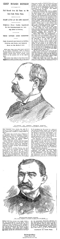 This scanned page from the New York Times (May 1895) announces the retirement of Timothy Golden, a NYC police officer and customer of the EISB.