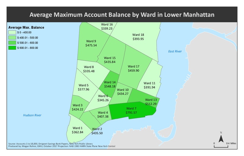 GIS map of New York wards showing the average savings of EISB depositors