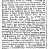 The New York Times article details the conviction of Peter Dawson, an EISB customer and Fourth Ward resident, for the September 1857 assault and battery of Mr. Potts.