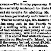 "Peter Dawson. --The Sunday papers say that Peter Dawson, who was lately sentenced to State Prison for nine years and six months for stabbing Mr. Potts, of Brooklyn, has been…