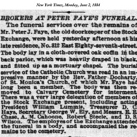 This notice appeared in the New York Times on Monday, June 2, 1884; it describes both the life and funeral of Peter J Faye.