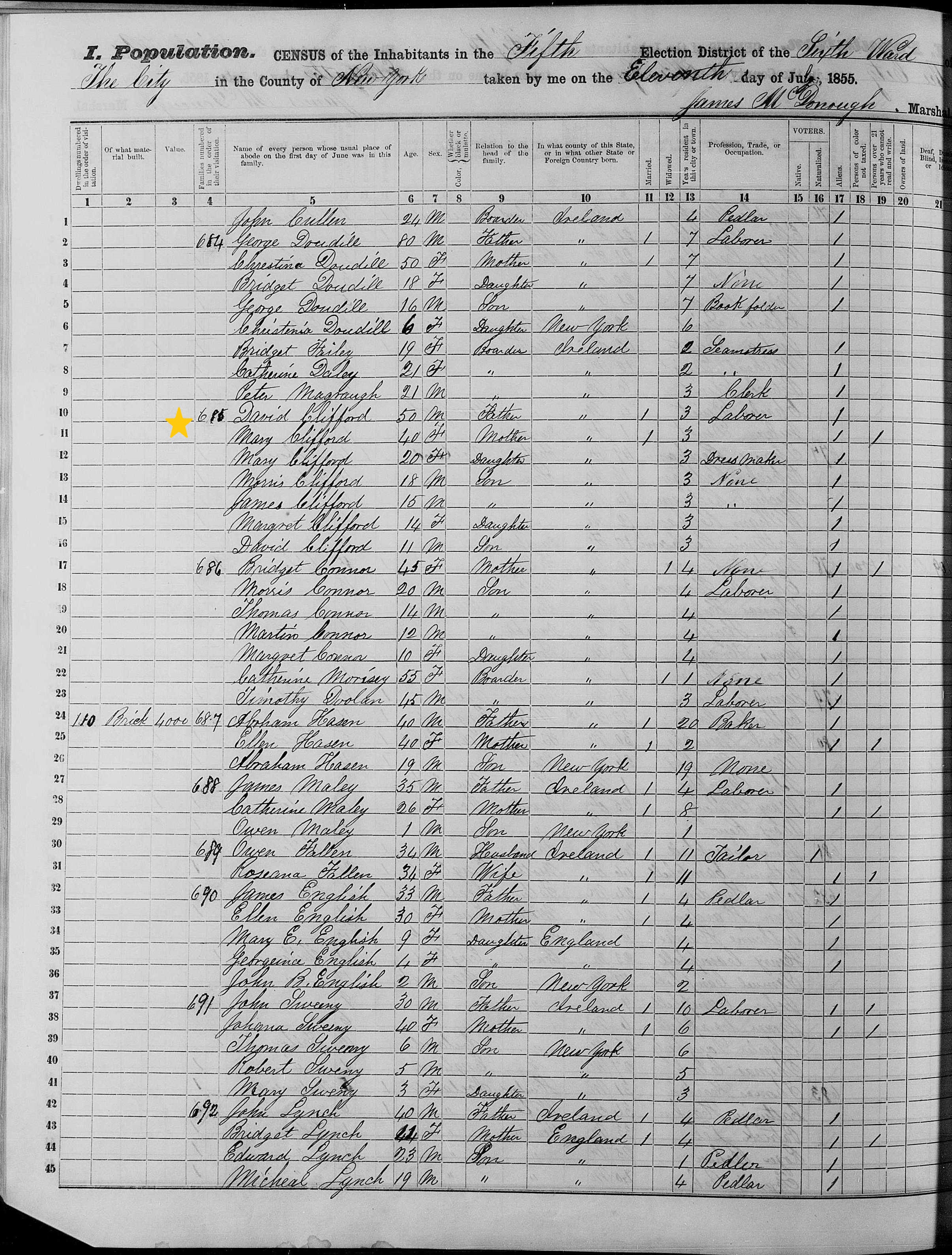 David and Mary Clifford; 1855 Census