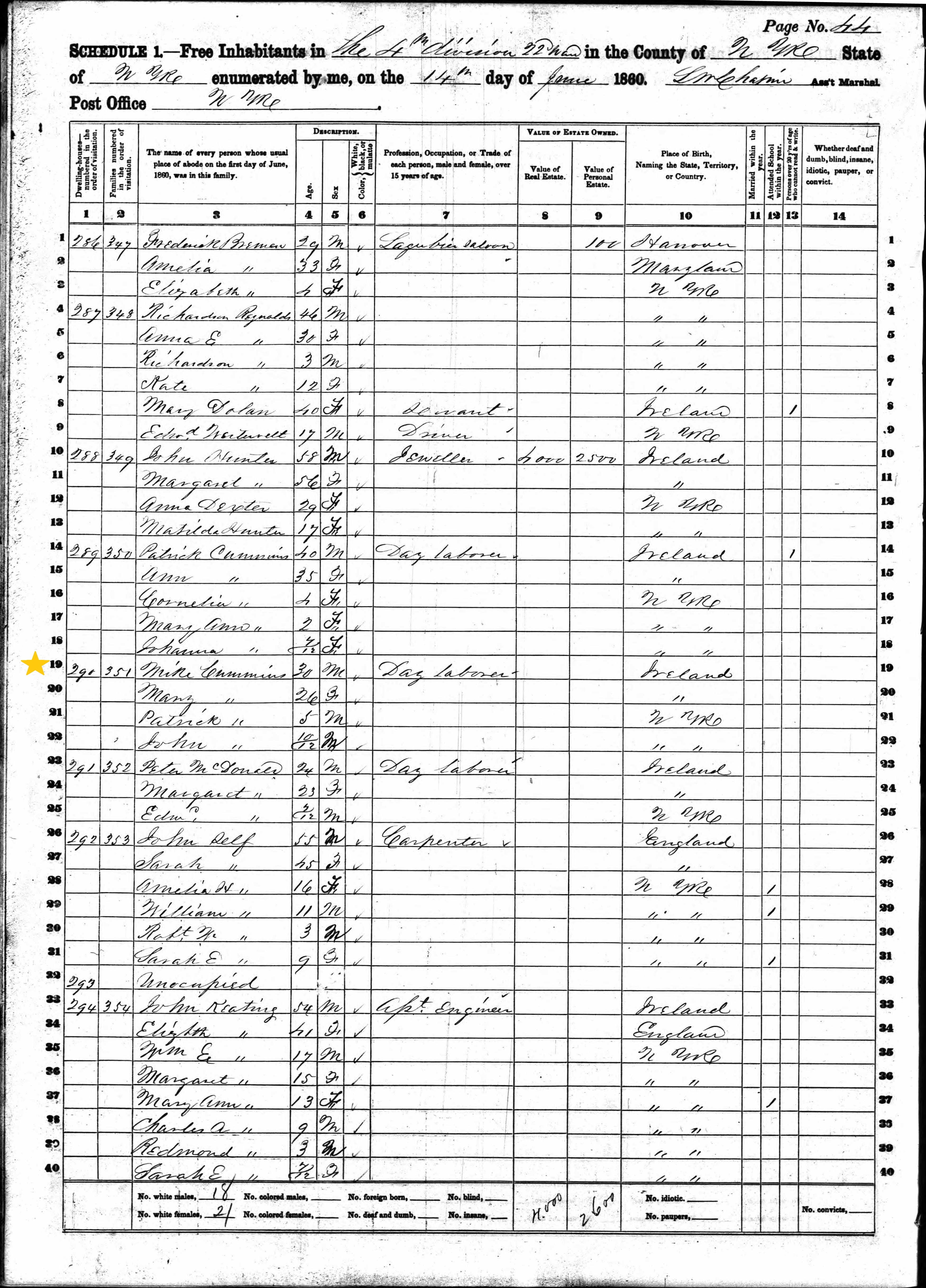 Michael Commons; 1860 Census