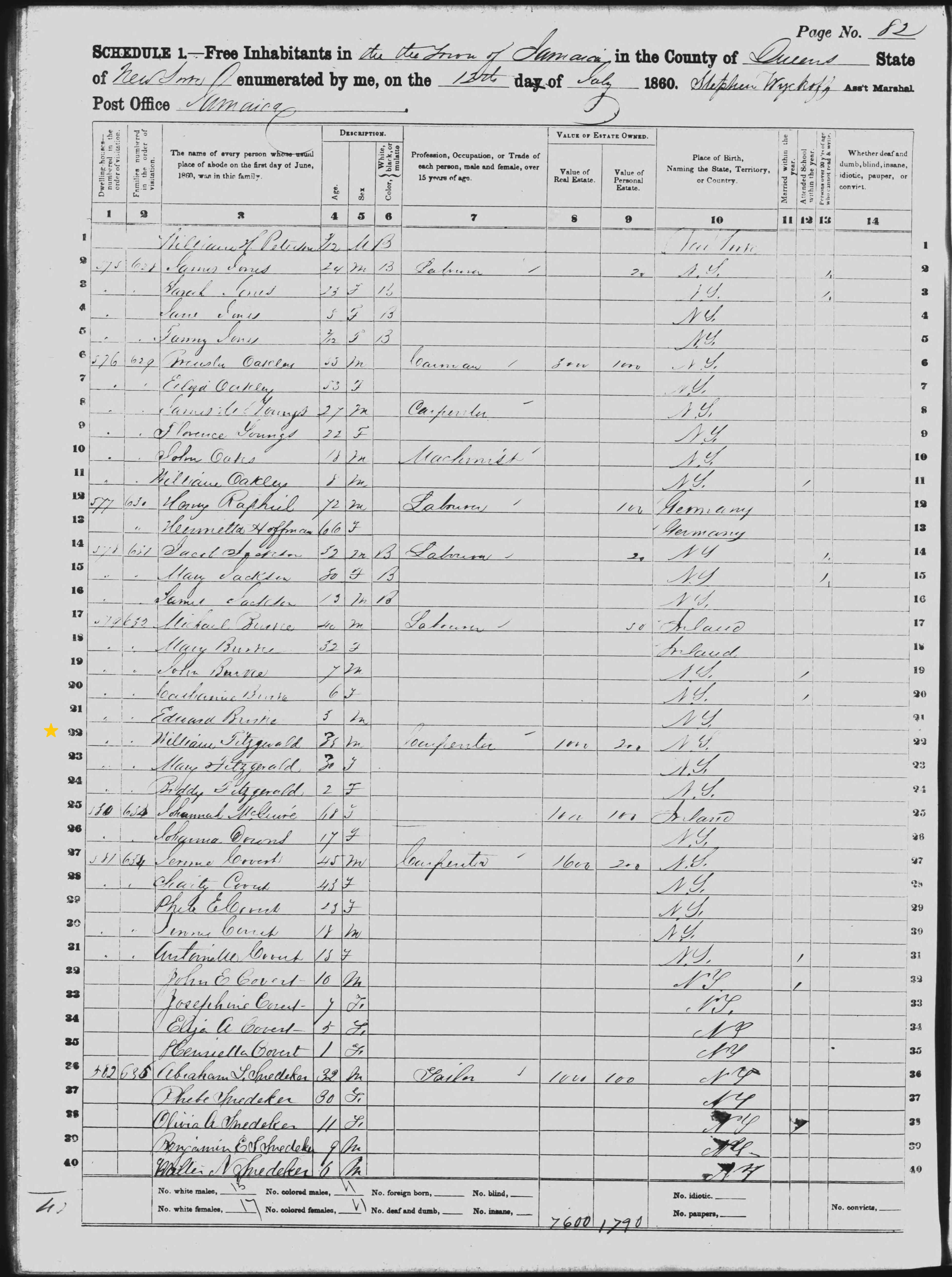 William Fitzgerald; 1860 Census
