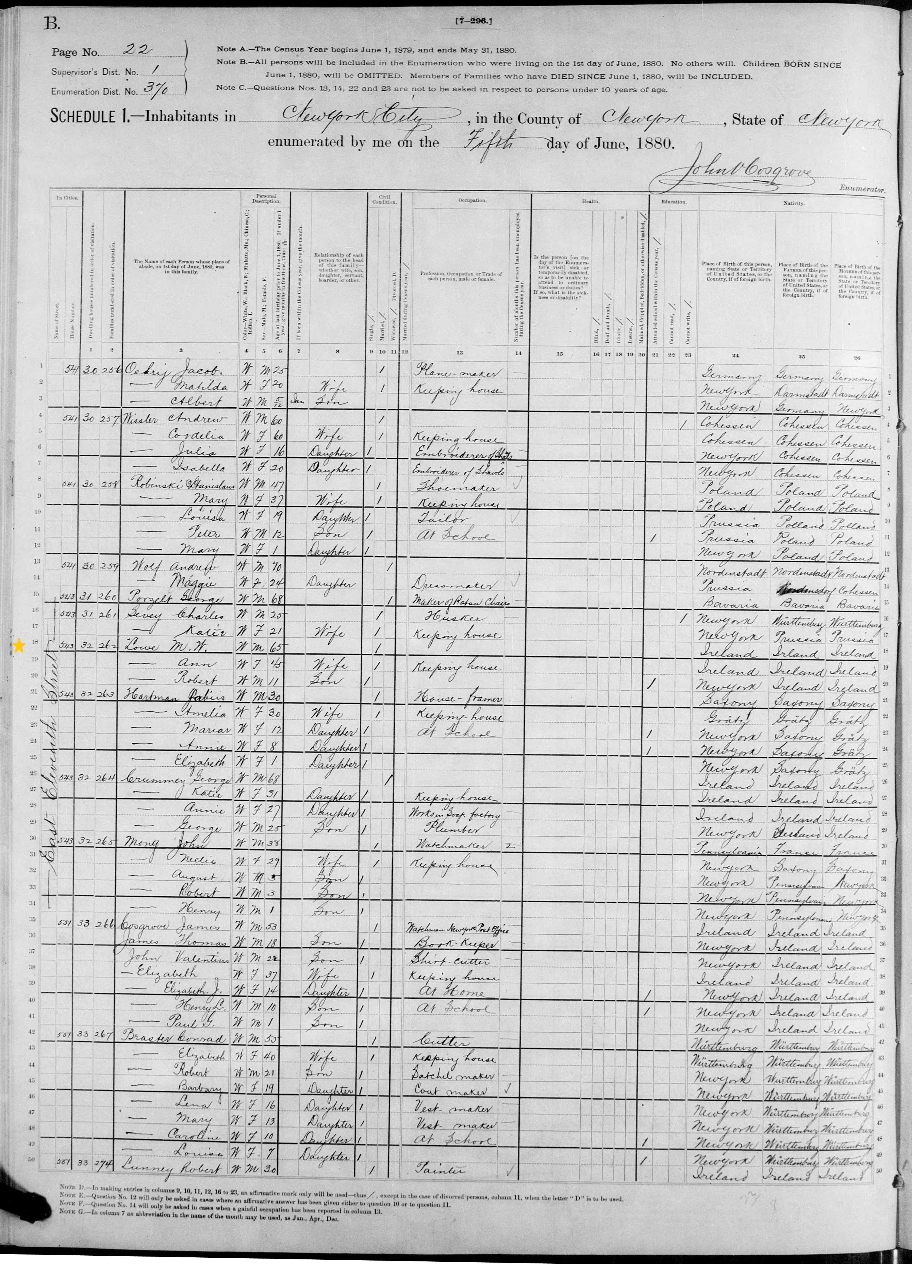 Michael Lowe; 1880 Census