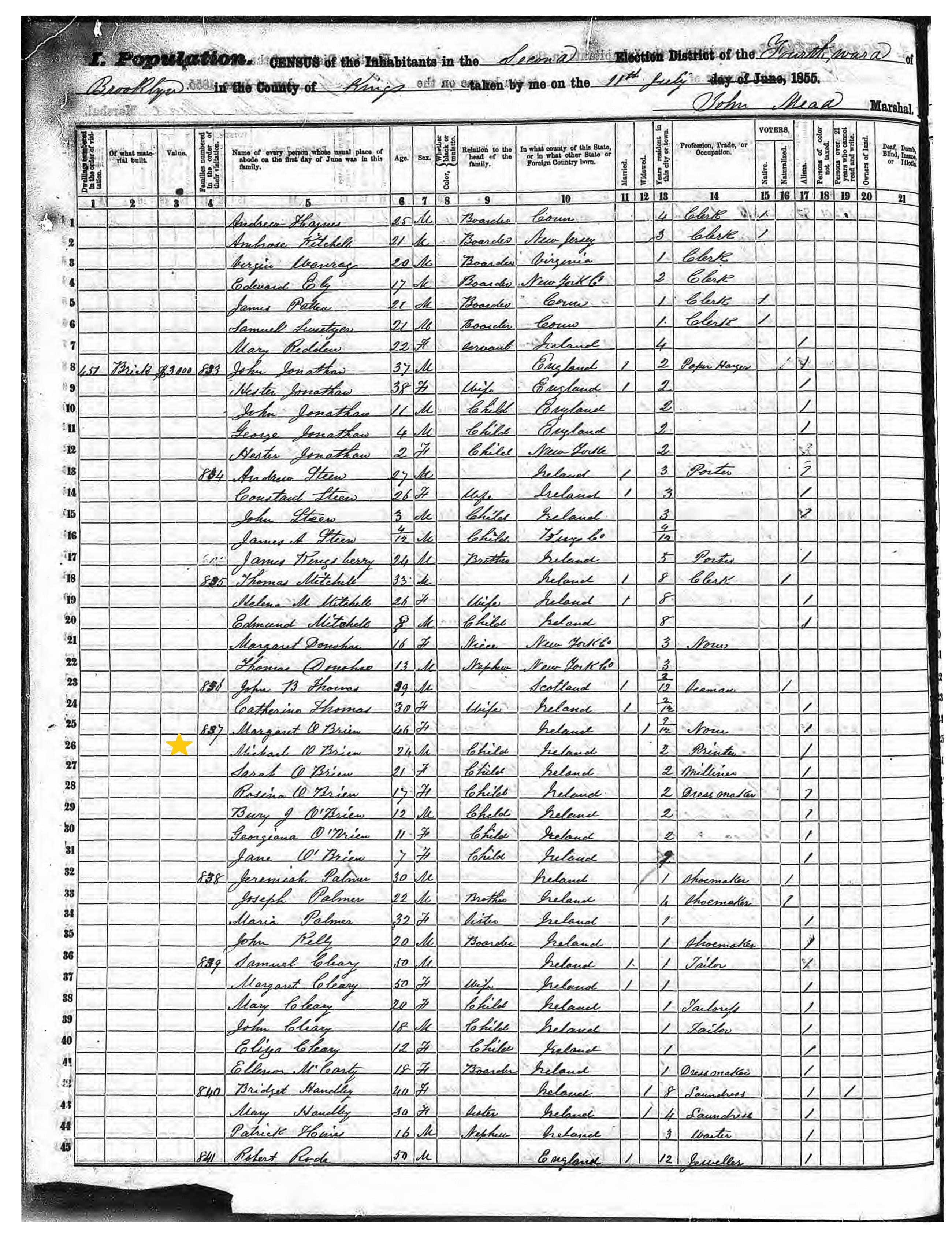 Michael O'Brien; 1855 Census