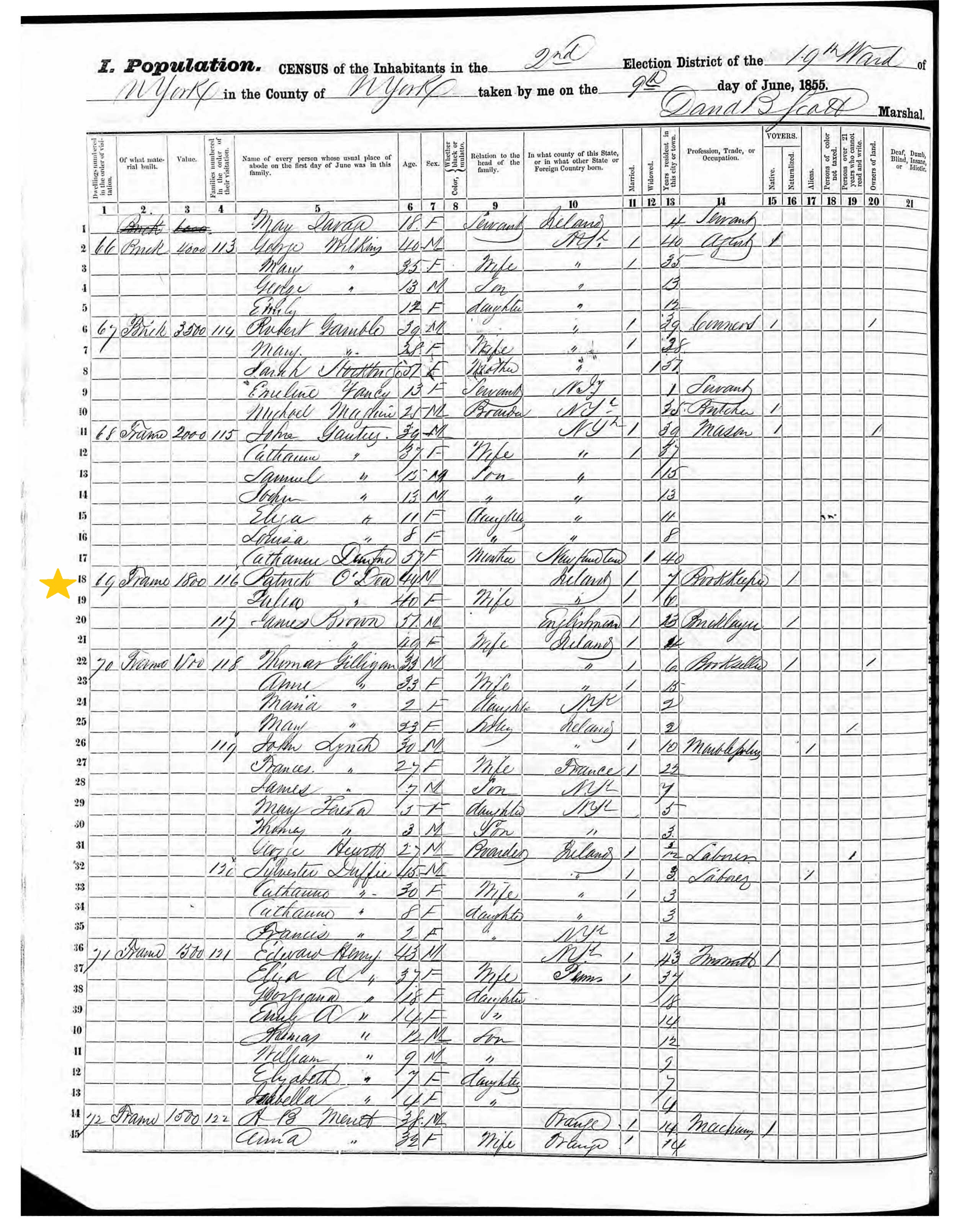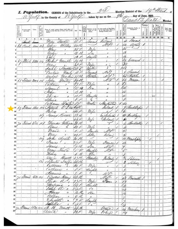 Julia O'Dea; 1855 Census