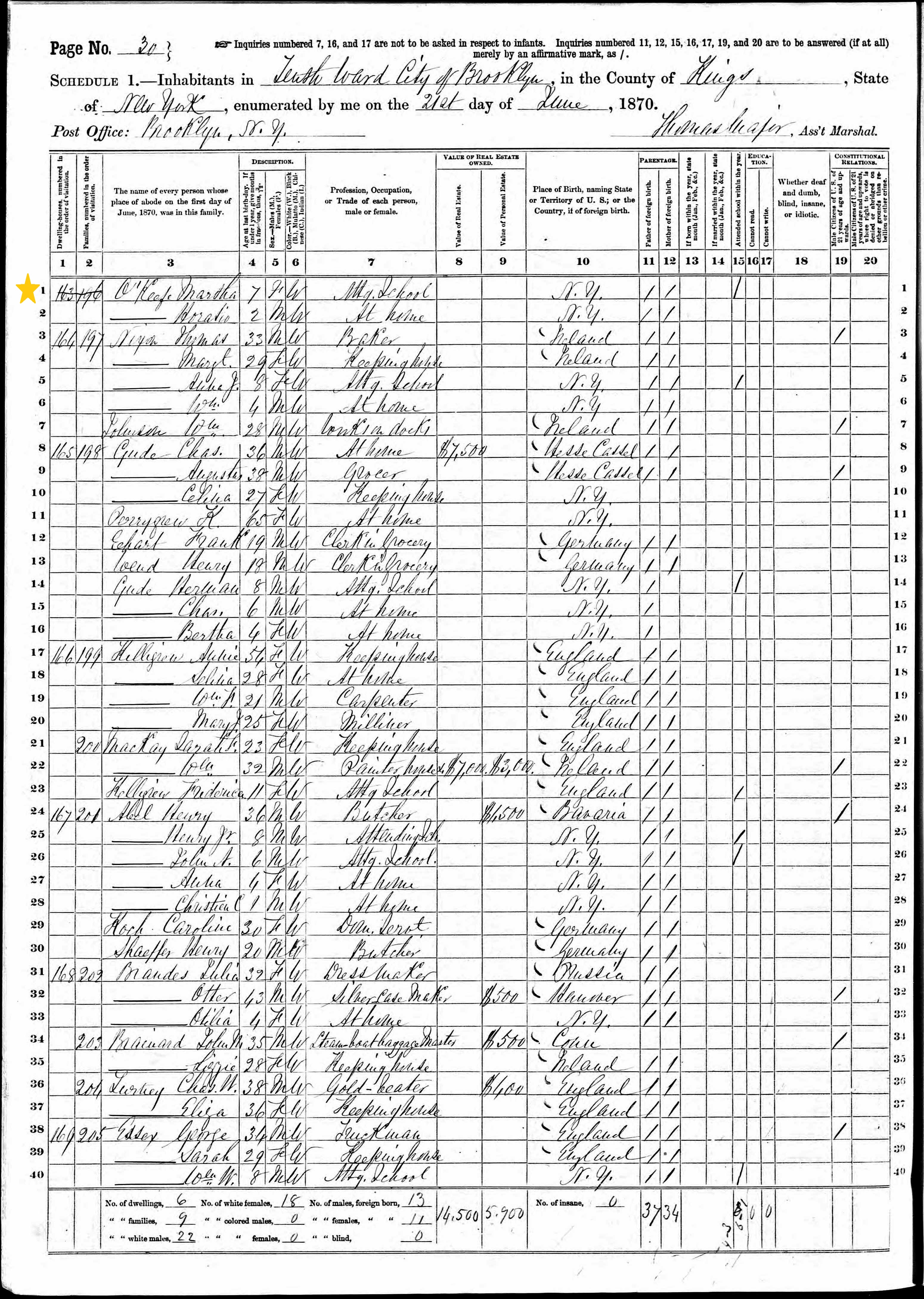 John O'Keefe; 1870 Census (2)