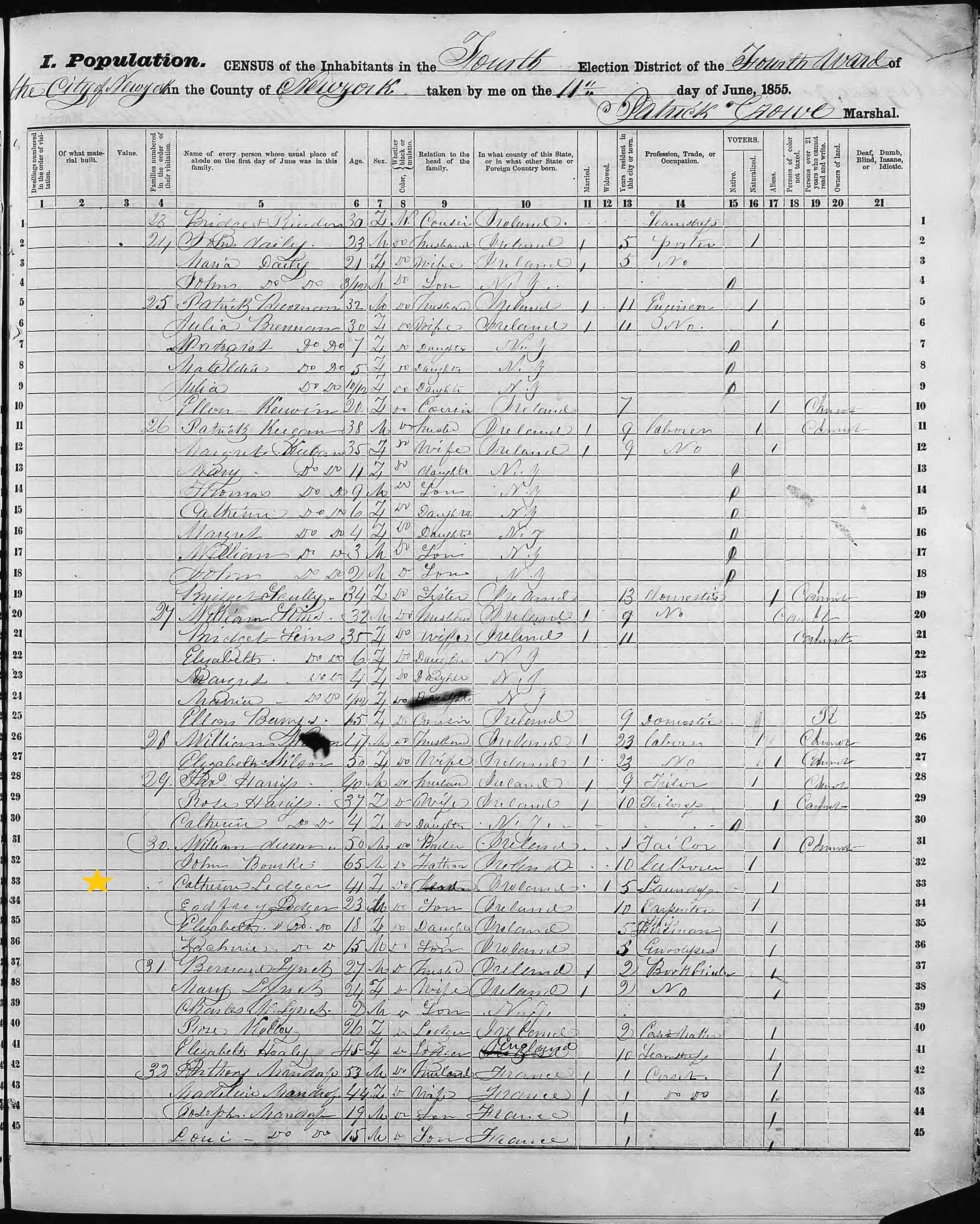 Catherine St. Leger and Godfrey St. Leger; 1855 Census