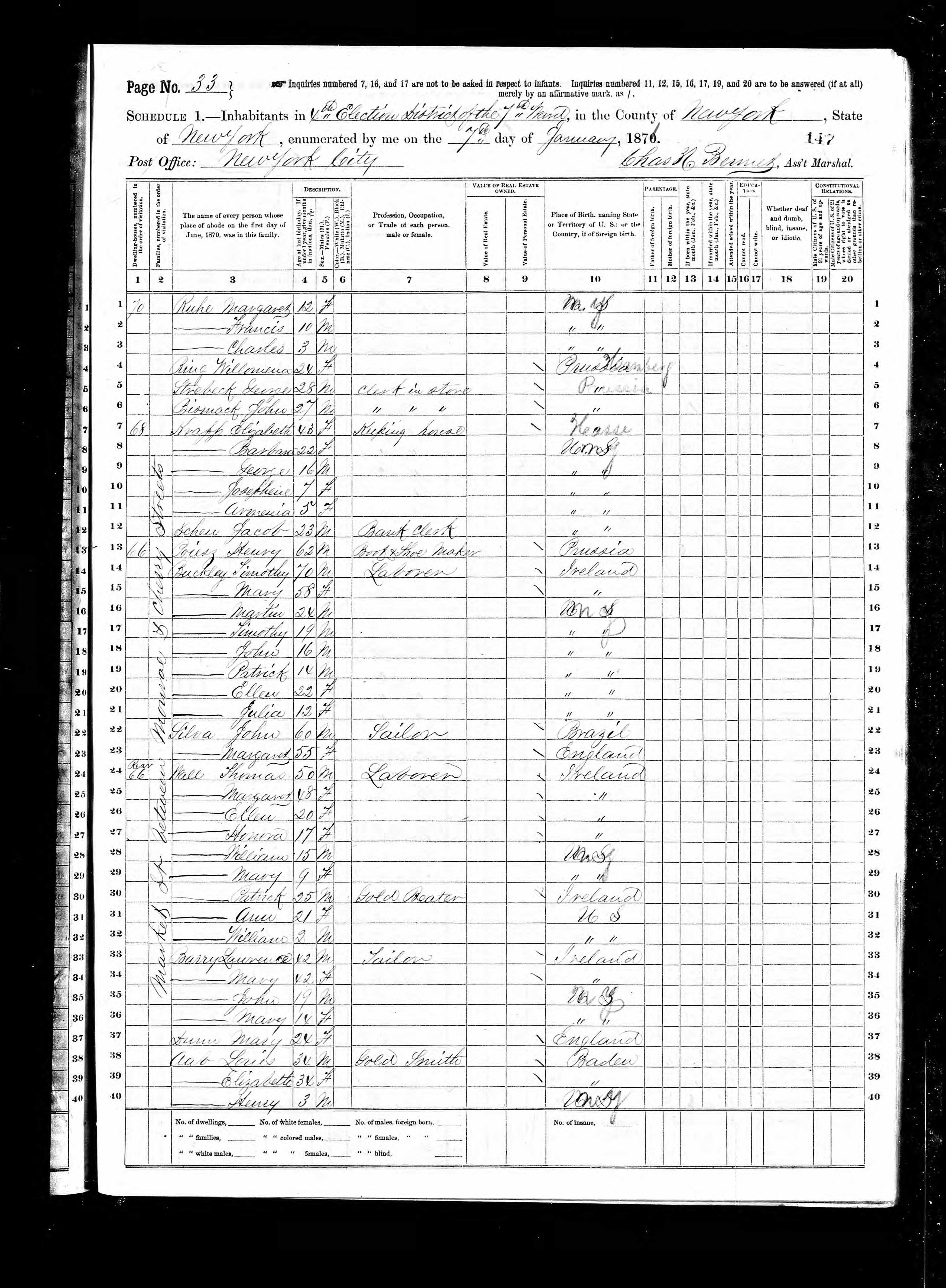 Thomas and Margaret Wall; 1870 Census