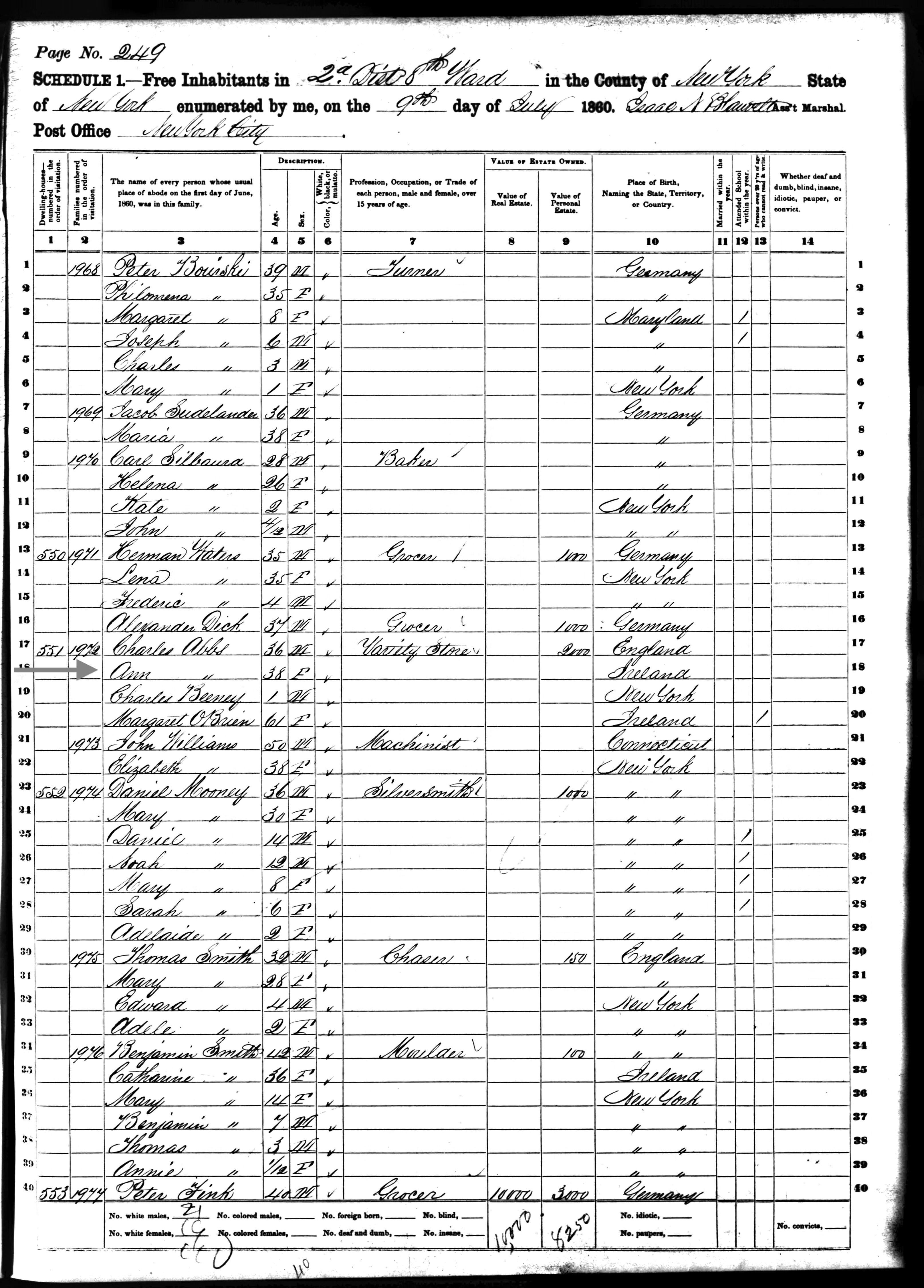 Anne Abbs; 1860 Census