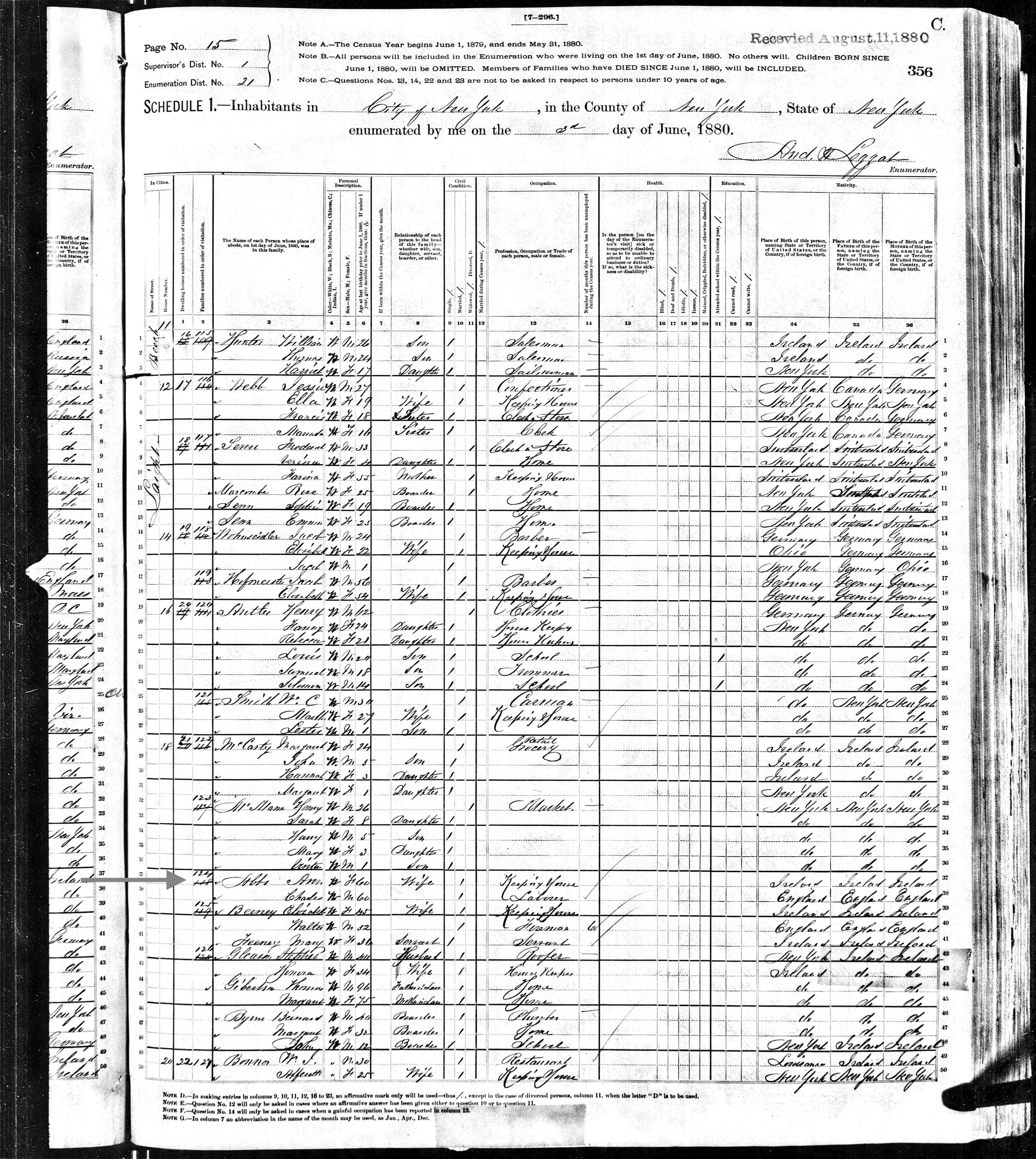 Anne Abbs; 1880 Census