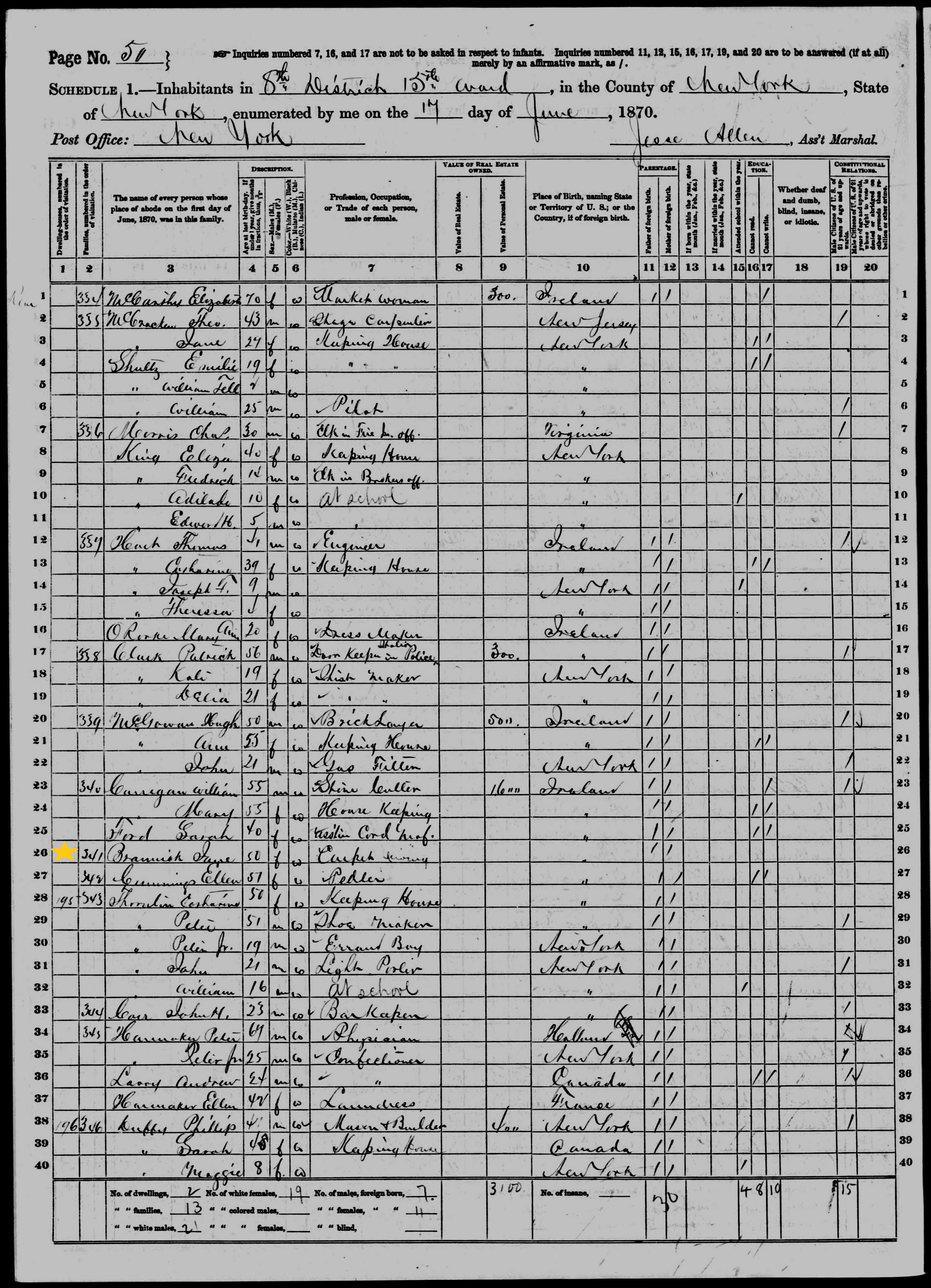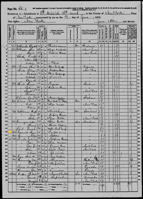 Jane Brannick; 1870 Census