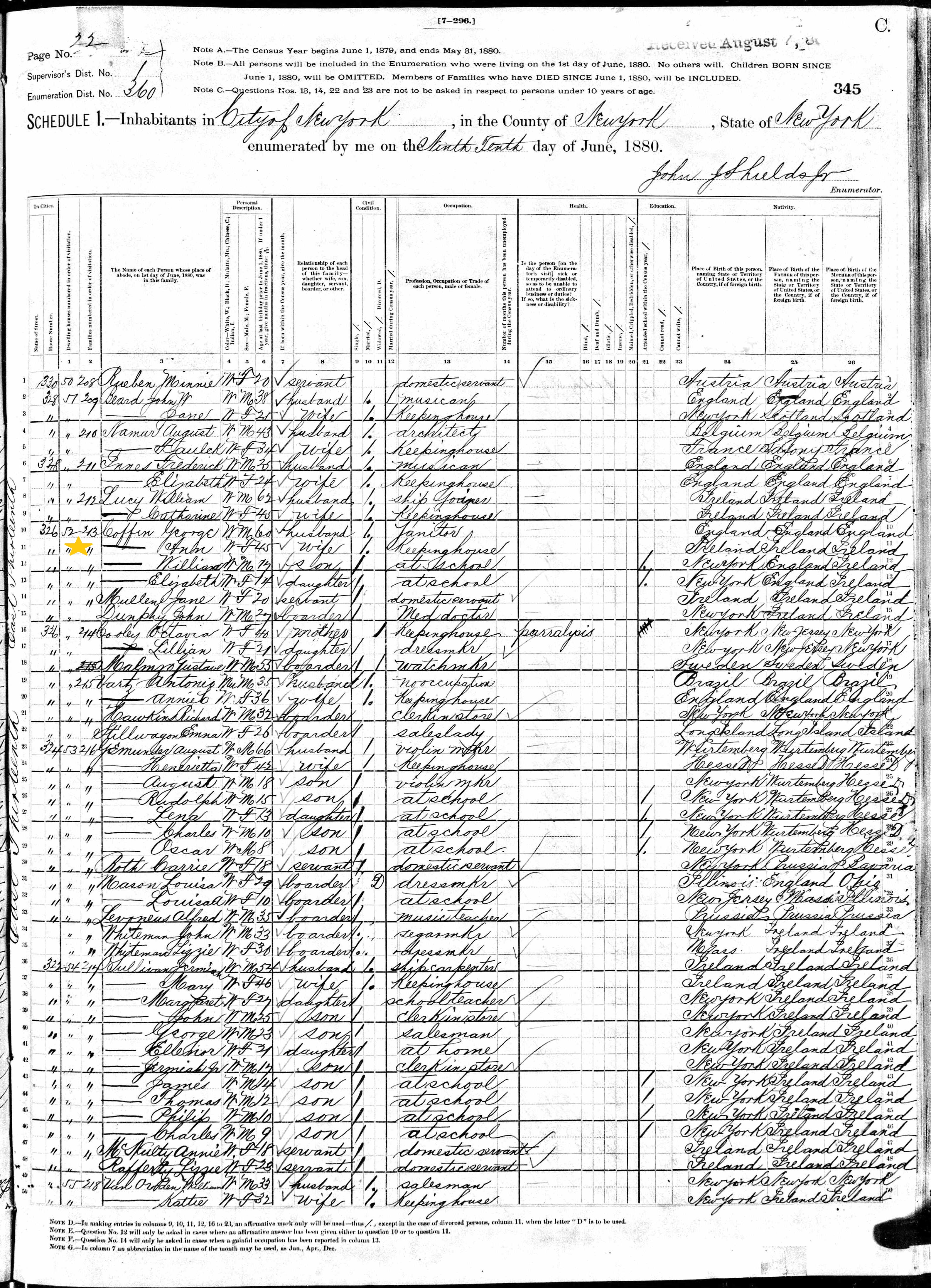 Ann Maria Coffin; 1880 Census