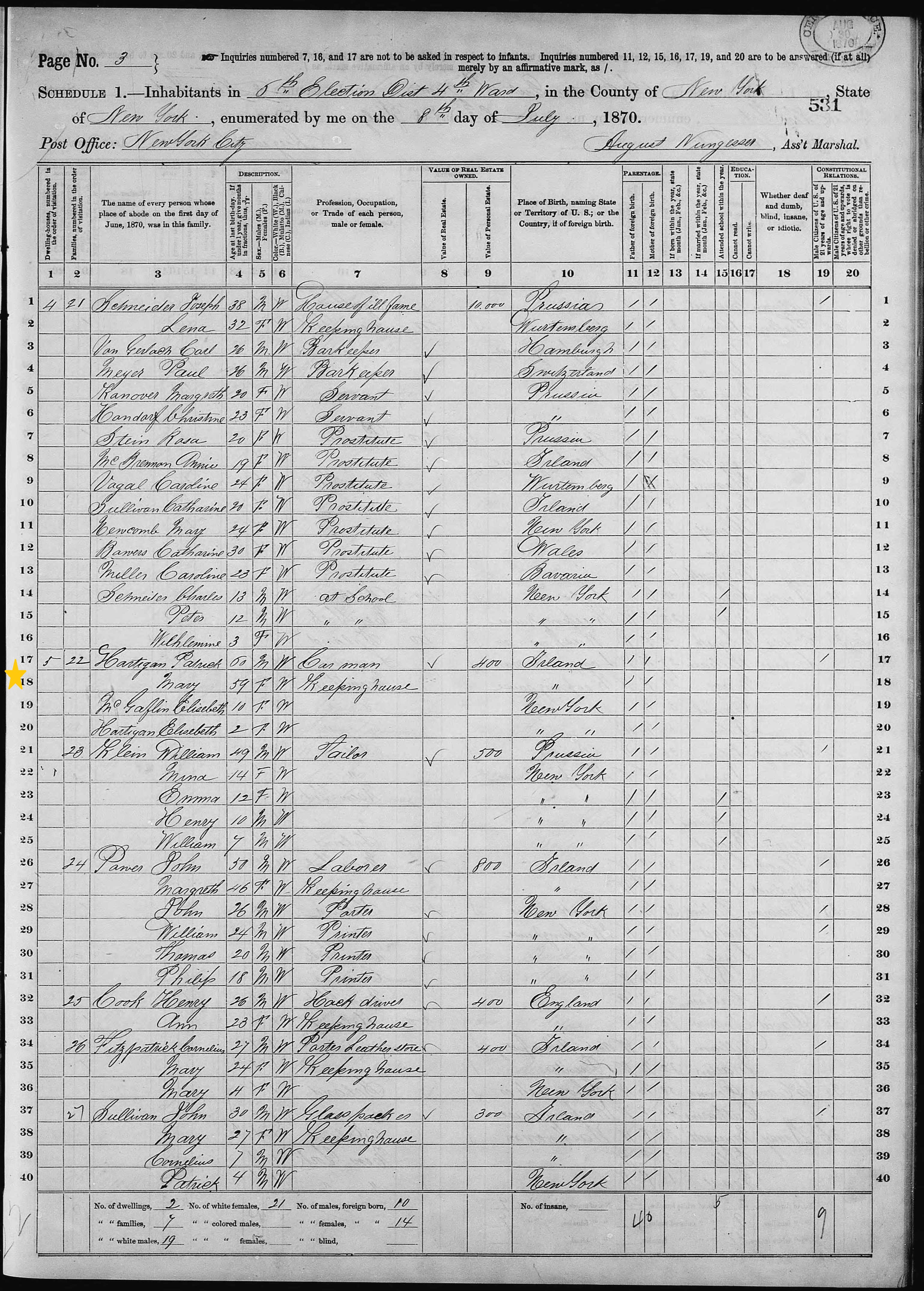 Mary Hartigan; 1870 Census
