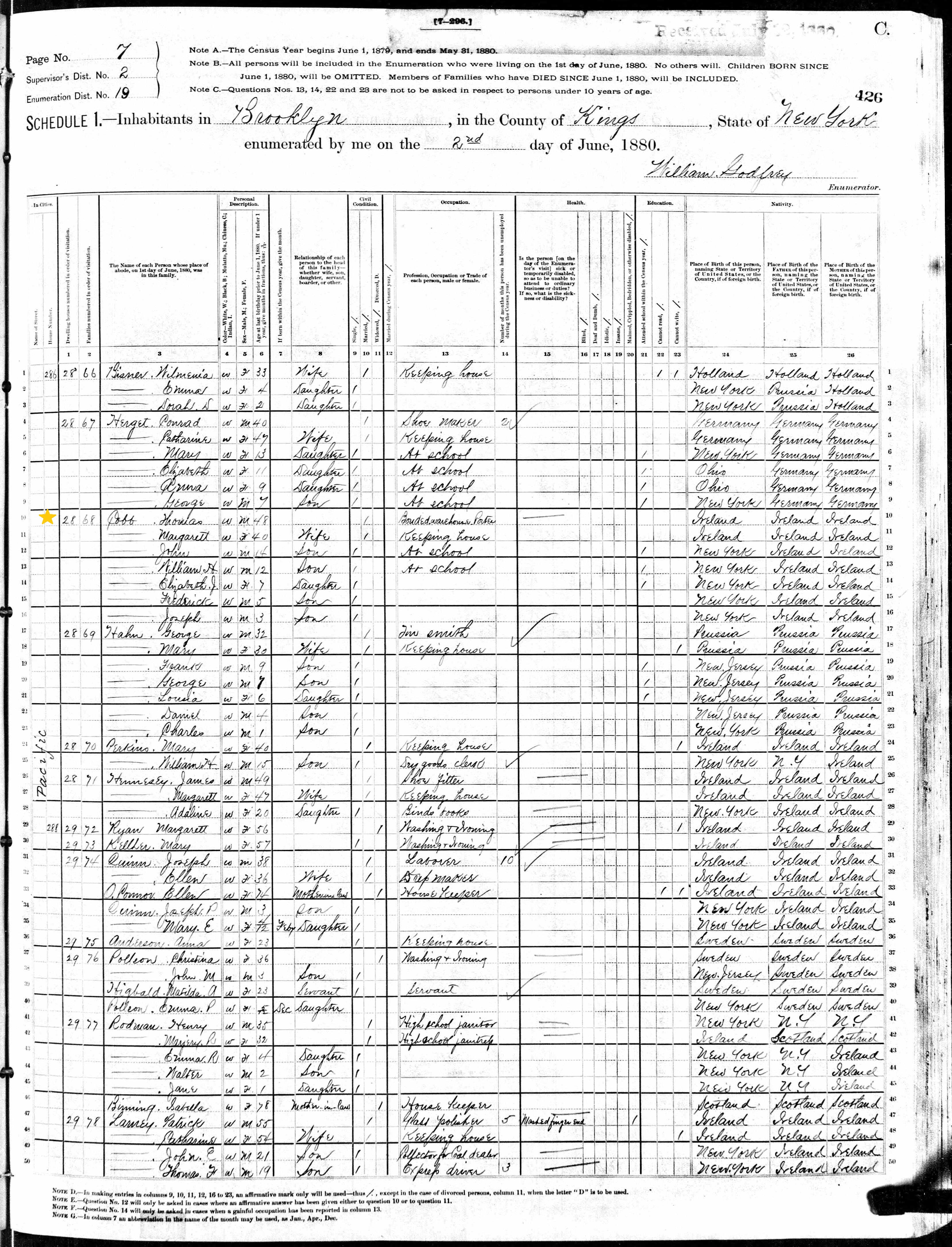Thomas Cobbe; 1880 Census