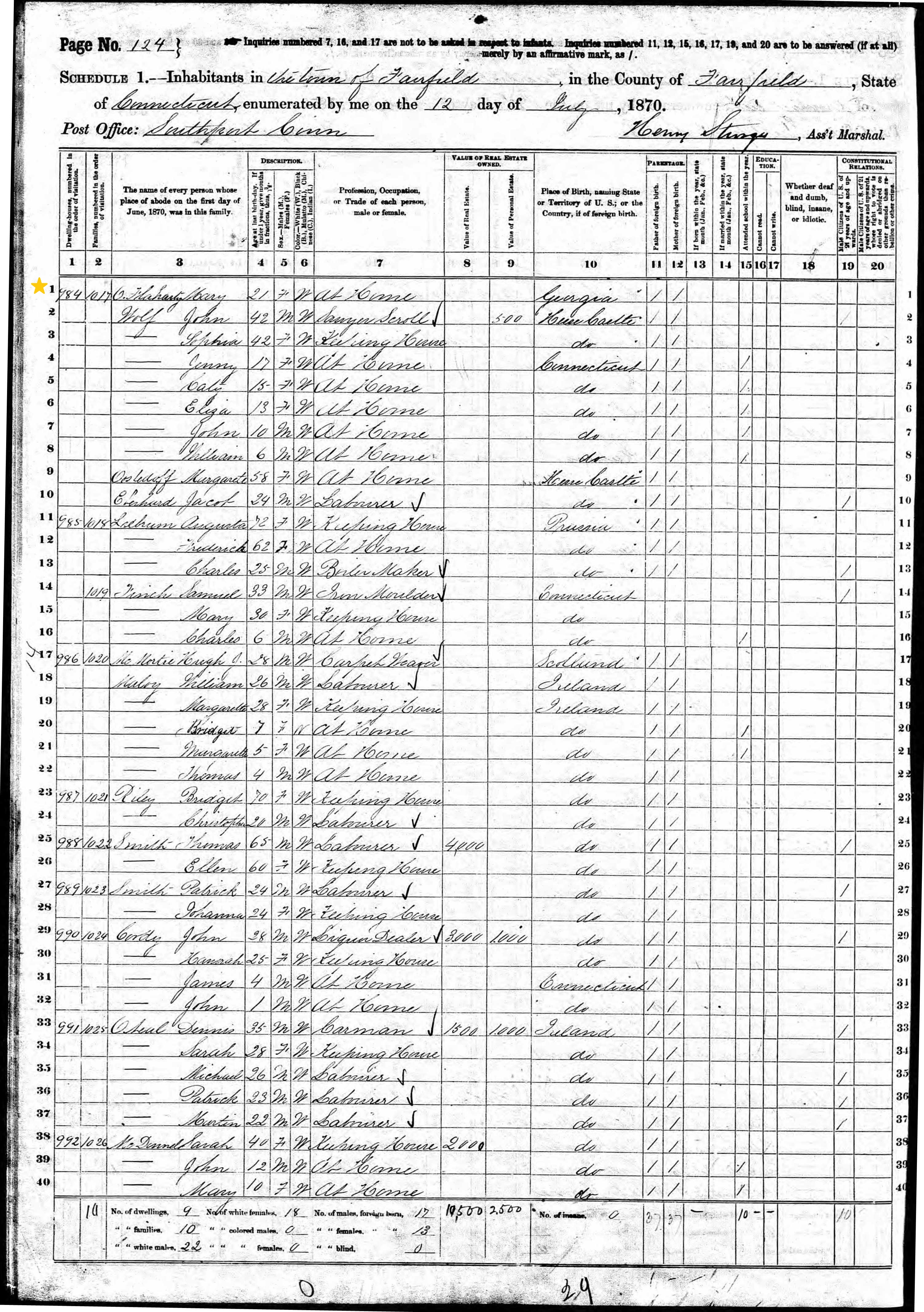 John O'Flaherty; 1870 Census (2)