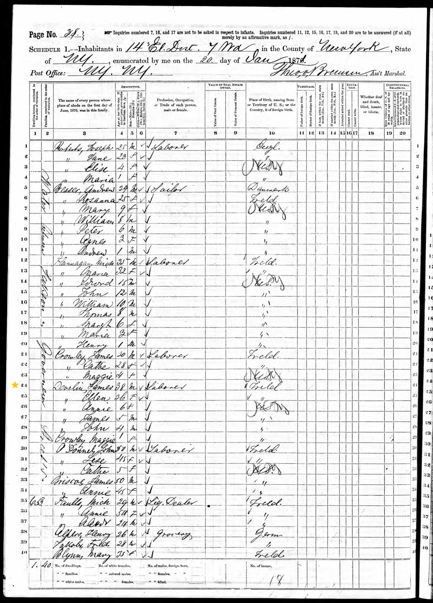 James Devlin; 1870 census, 2nd Enumeration