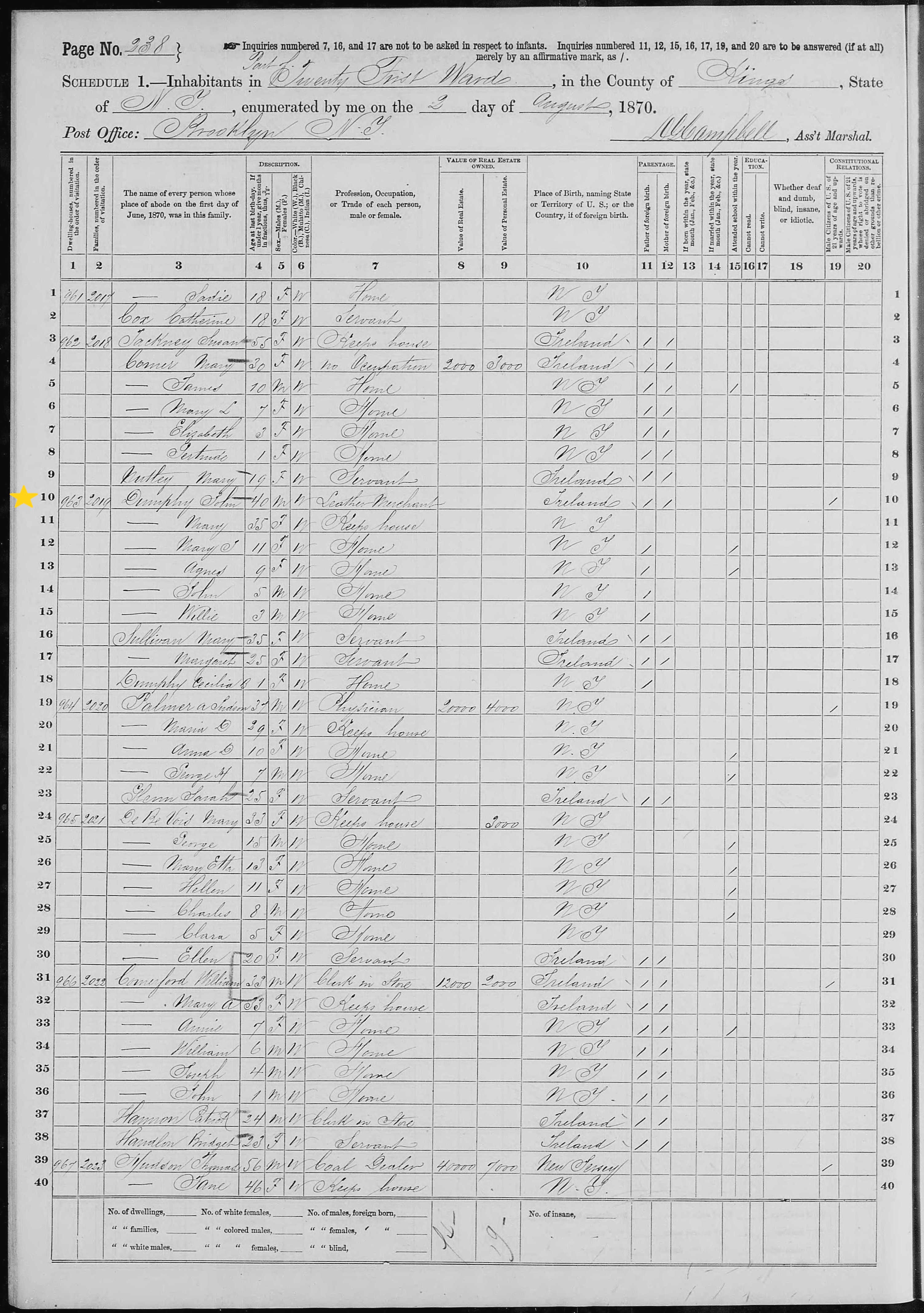 John Dunphy; 1870 Census