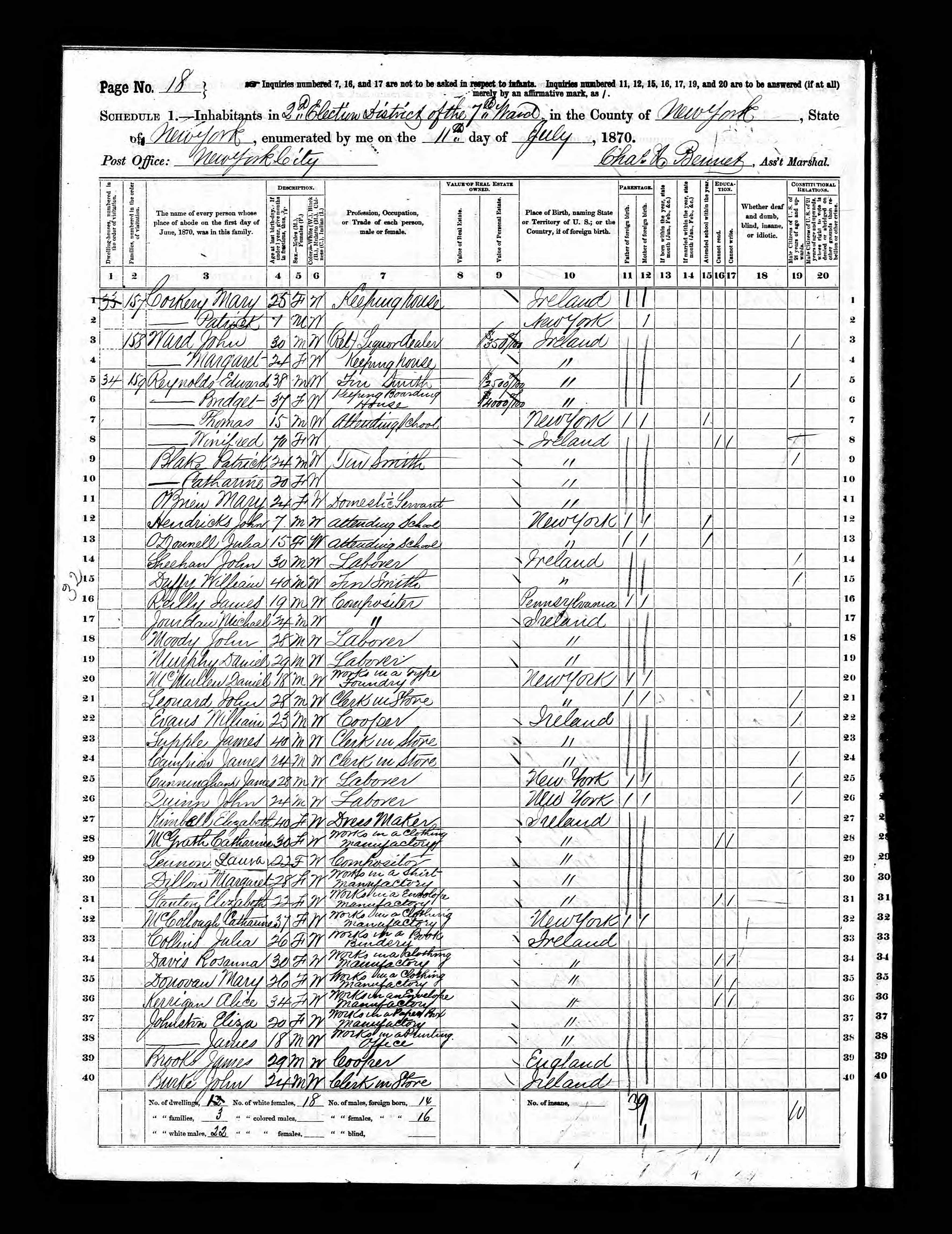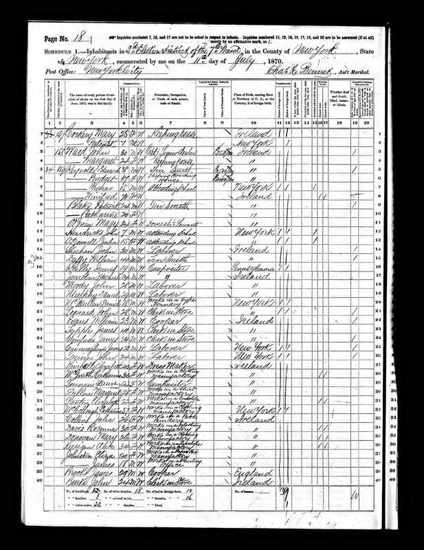 Edward and Bridget Reynolds; 1870 Census