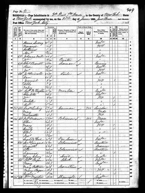 Johanna Wall; 1860 Census
