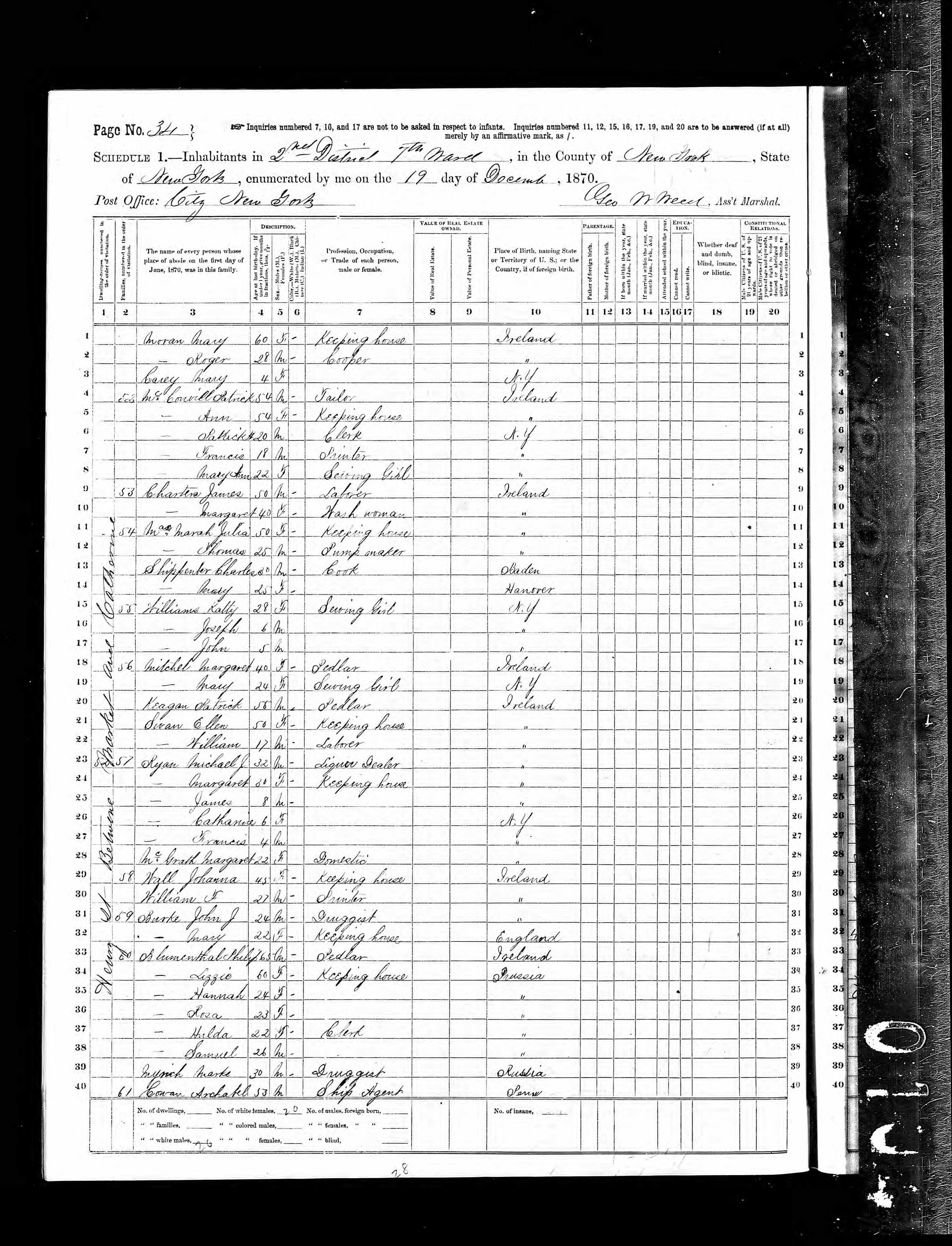 Johanna Wall; 1870 Census