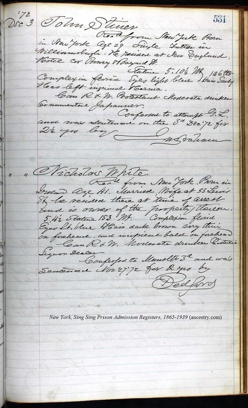 Nicholas White; Sing Sing Prison Admission Records