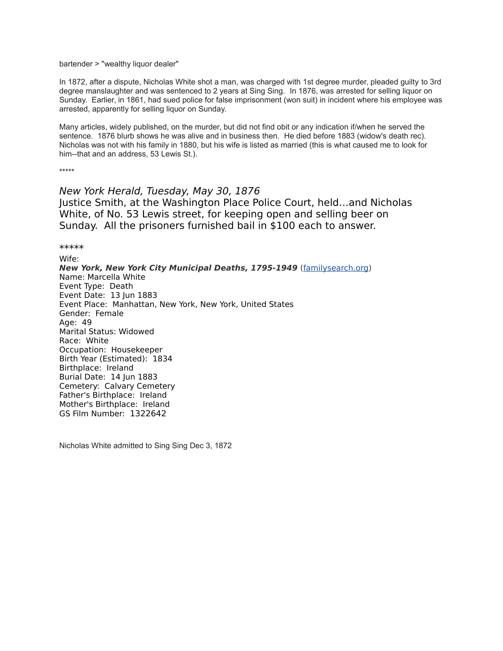 Nicholas White Additional Information