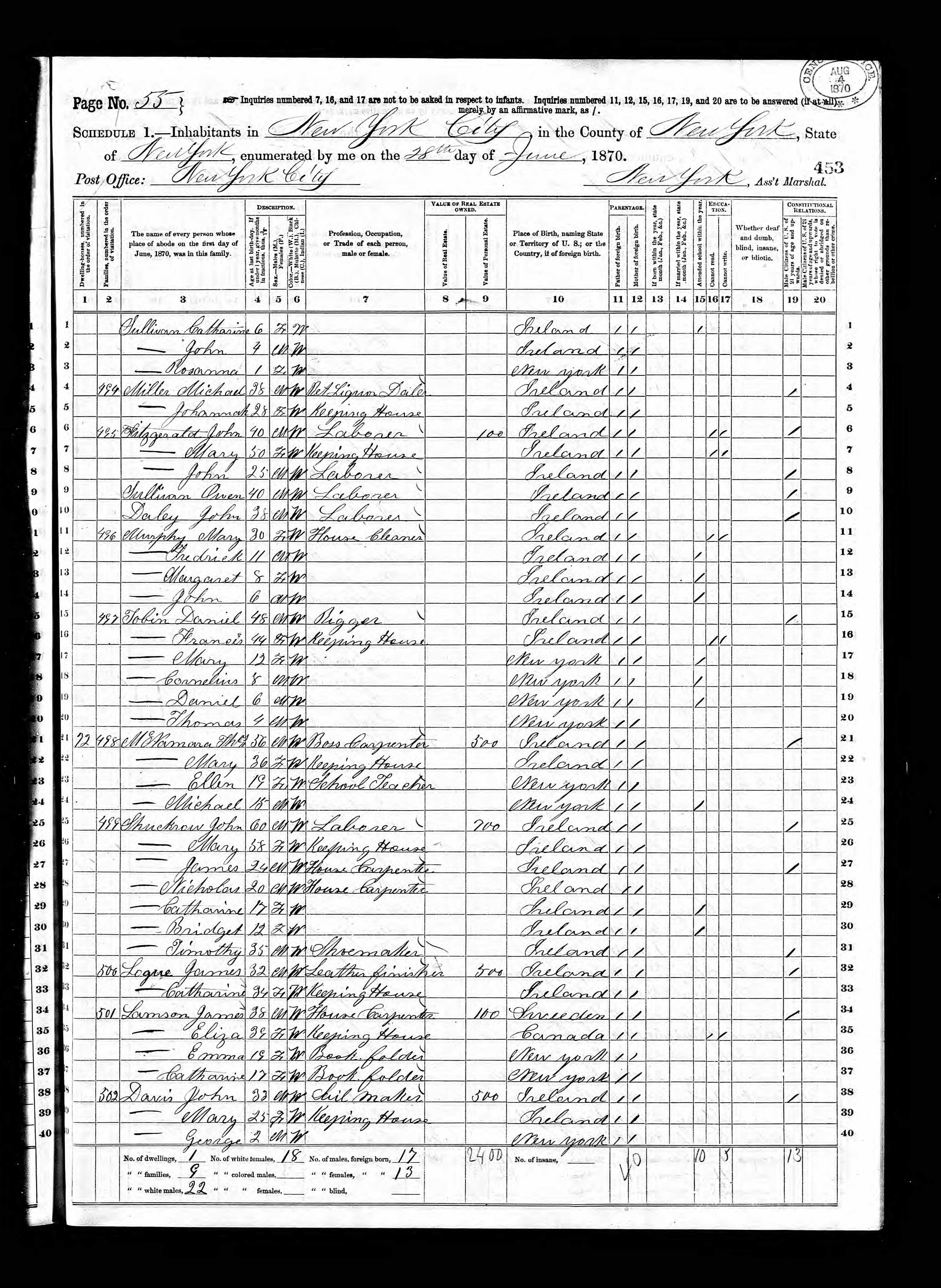 Thomas and Mary McNamara; 1870 Census