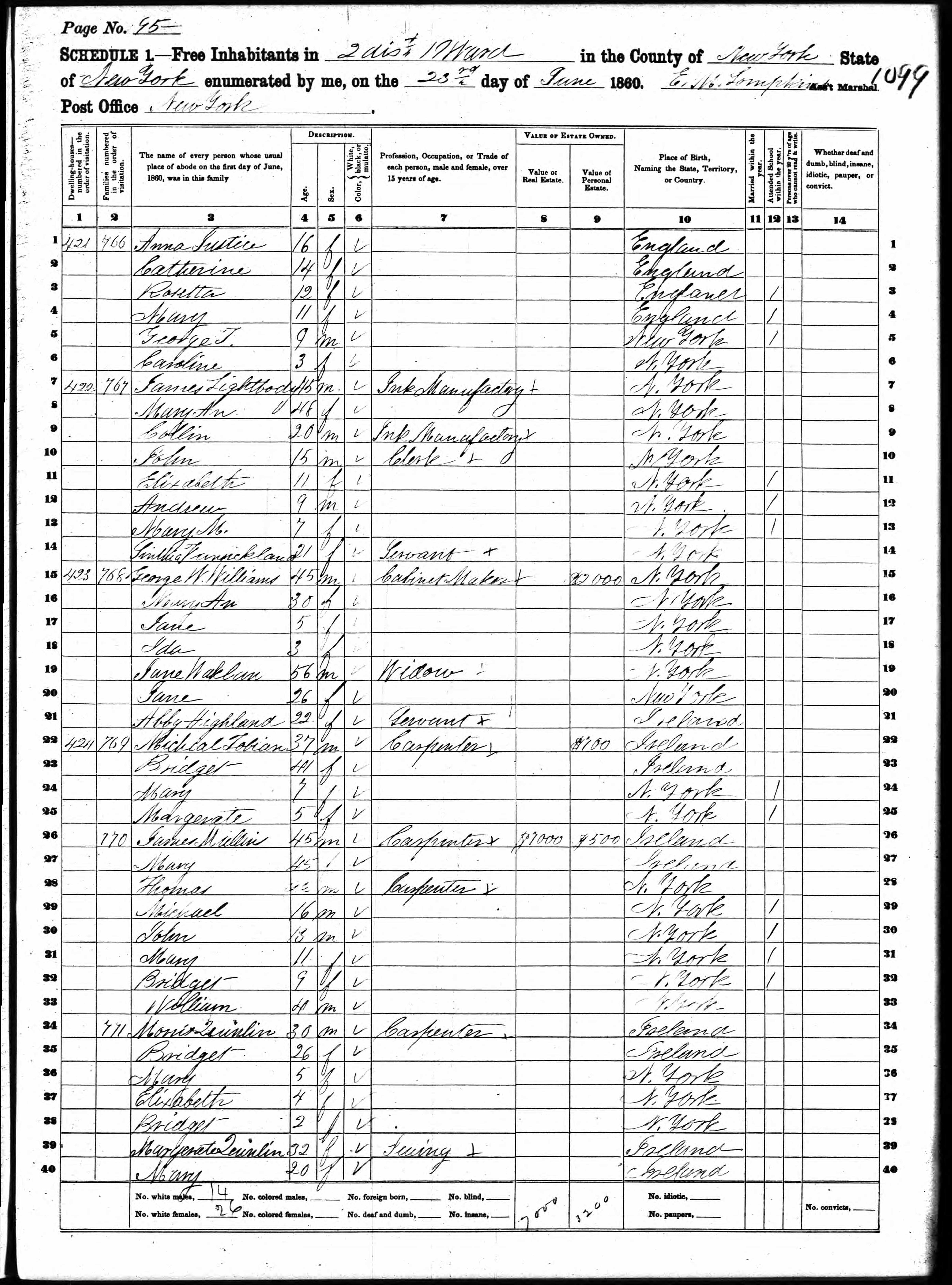 Maurice Quinlan; 1860 Census