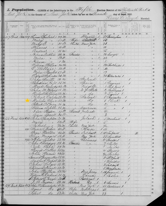 Malachy Clear; 1855 Census
