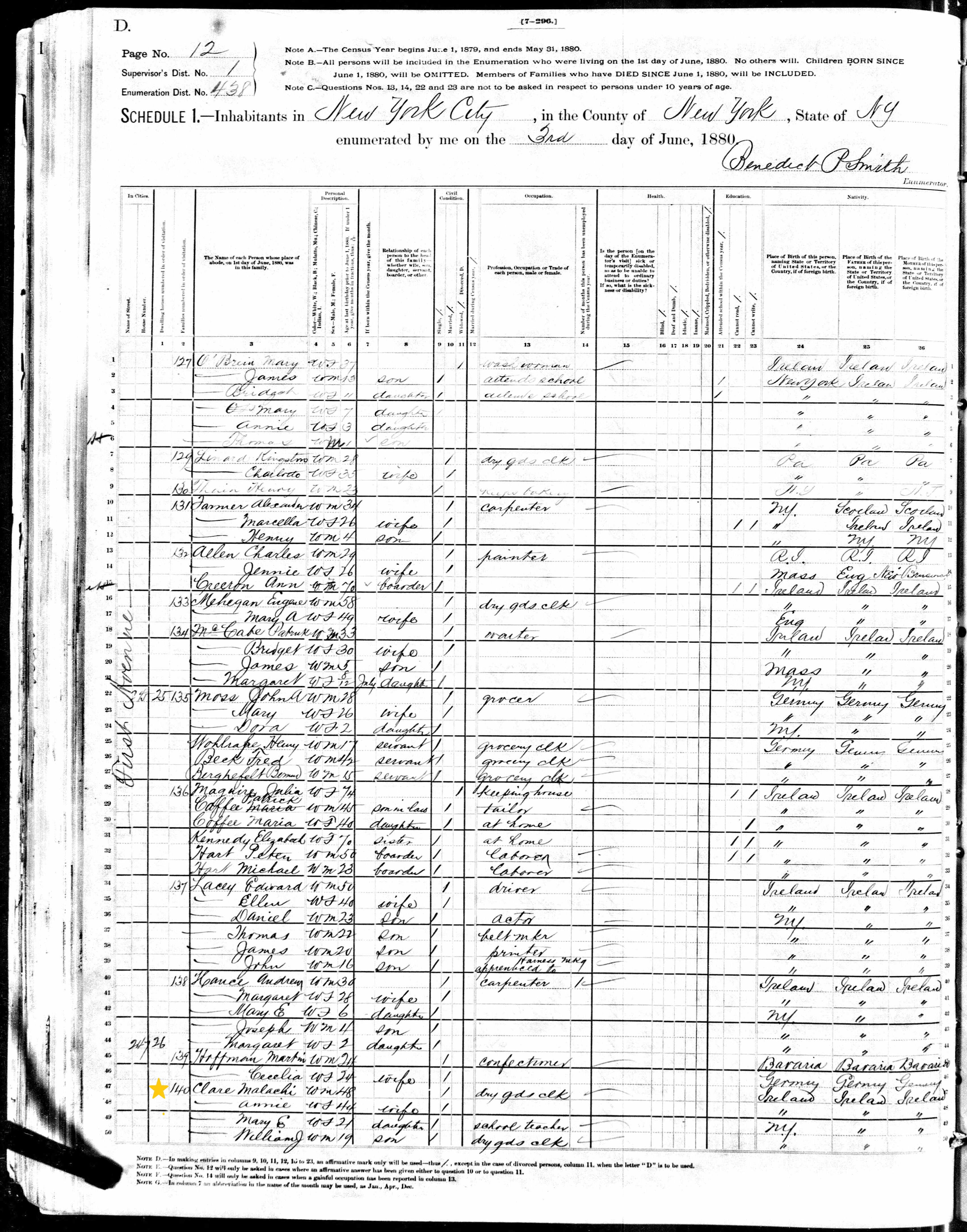 Malachy Clear; 1880 Census (1)