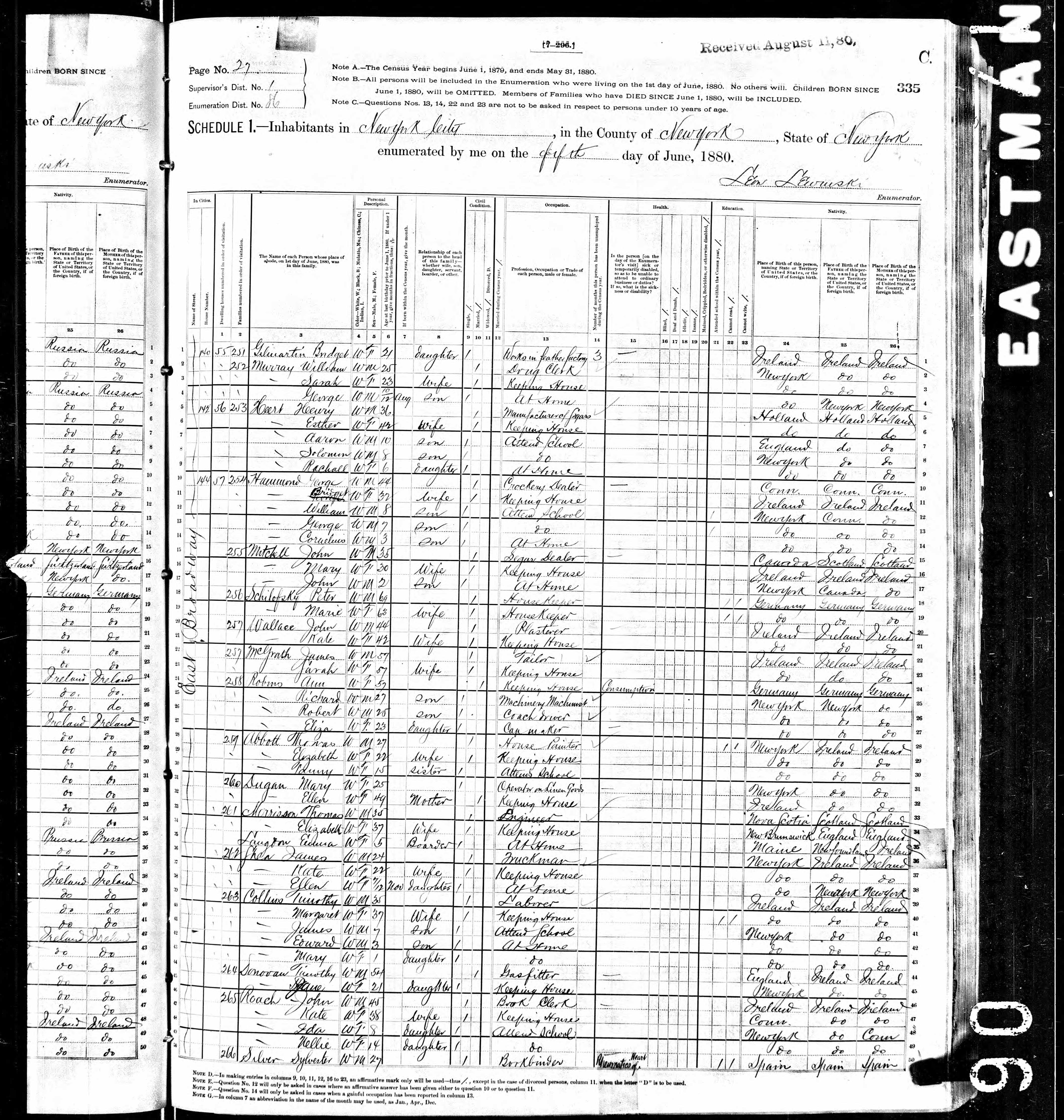 John Roche; 1880 Census