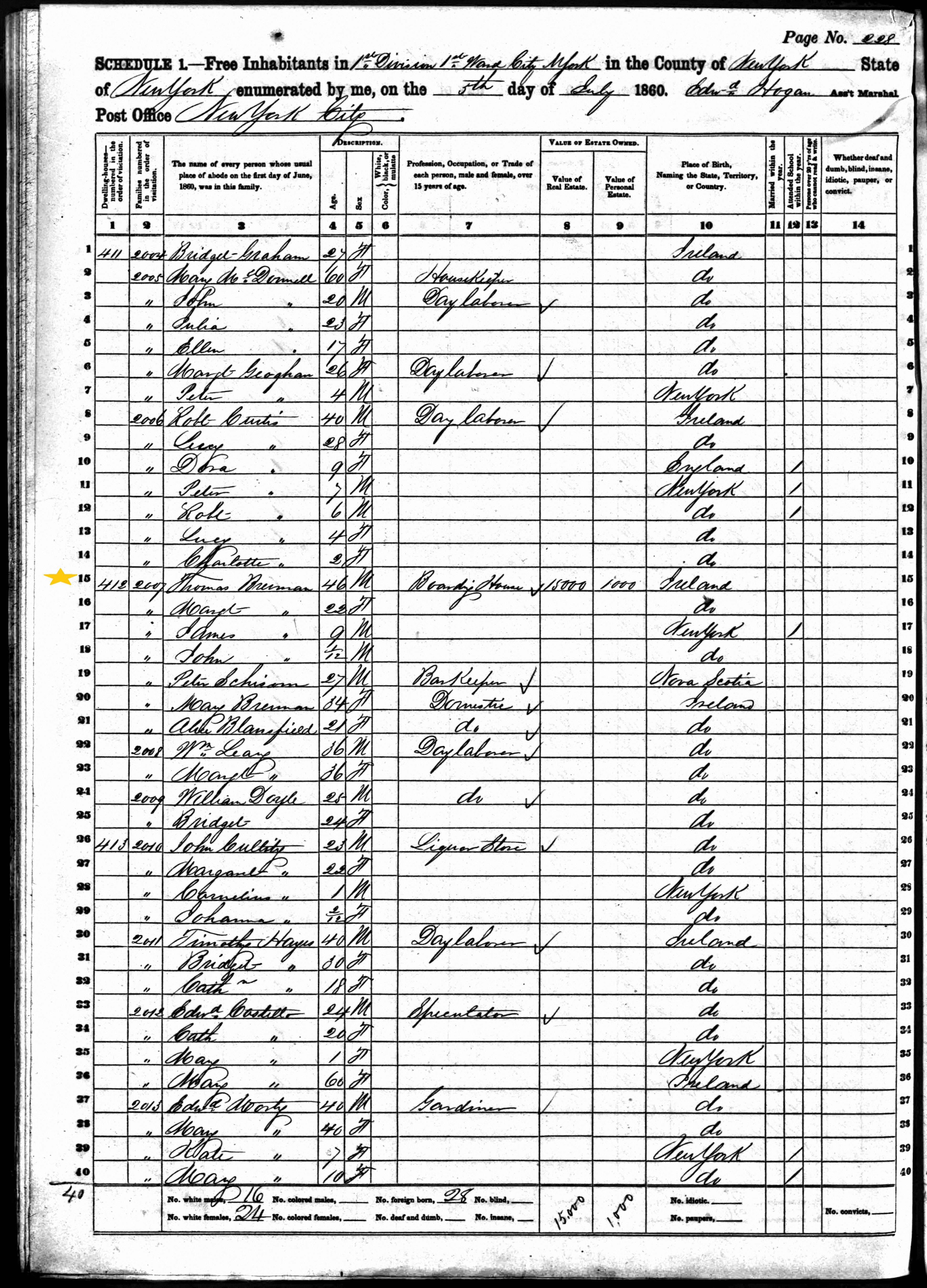 Thomas Brennan; 1860 Census