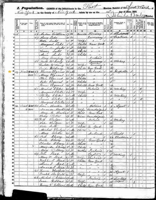 Thomas Byrnes; 1855 Census