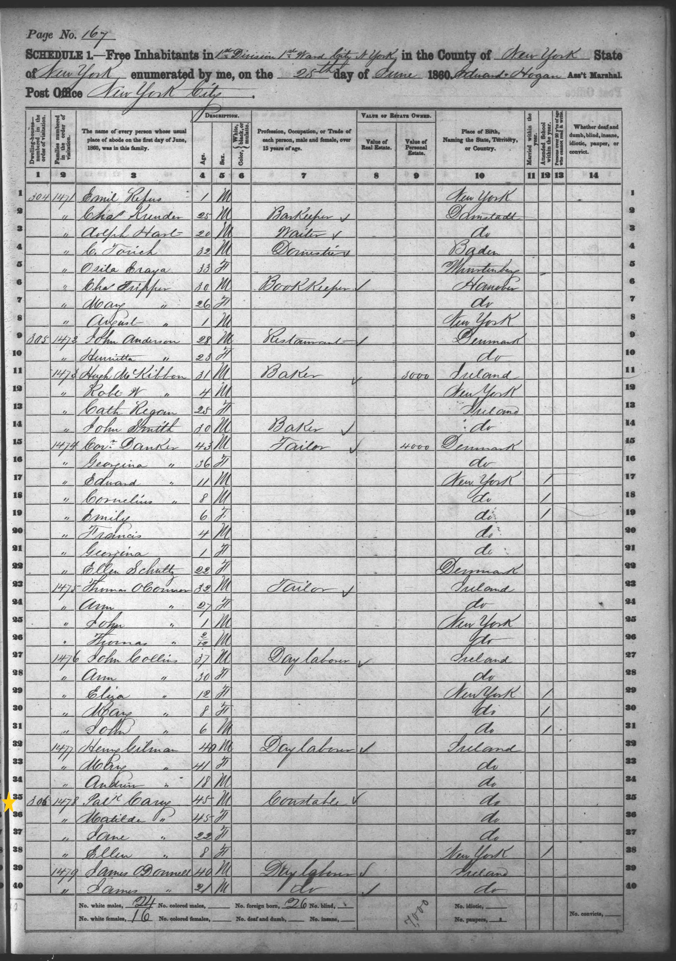 Andrew and Matilda Carey; 1860 Census (Andrew Misnamed as Patrick)