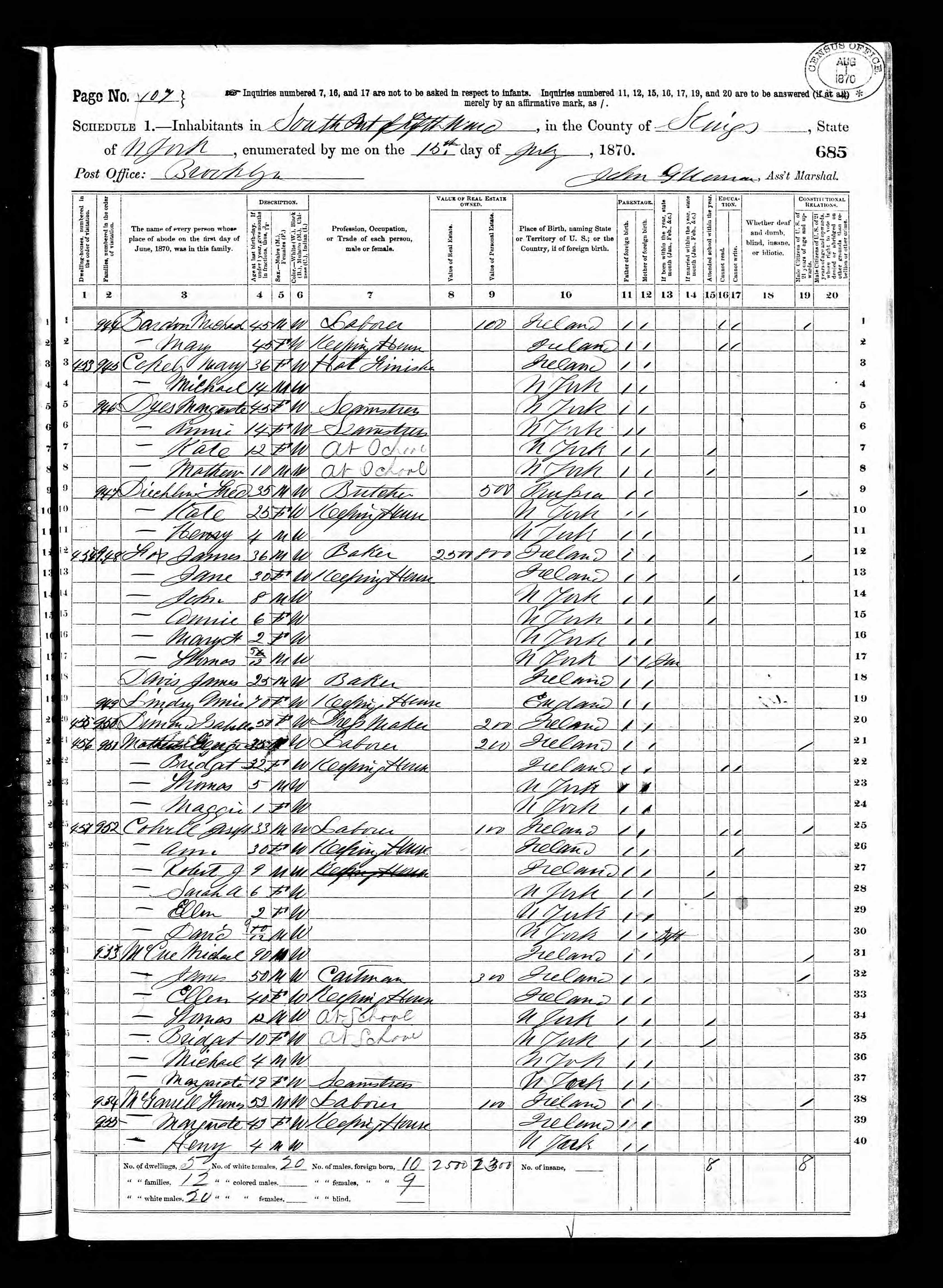Isabella Dimon; 1870 Census