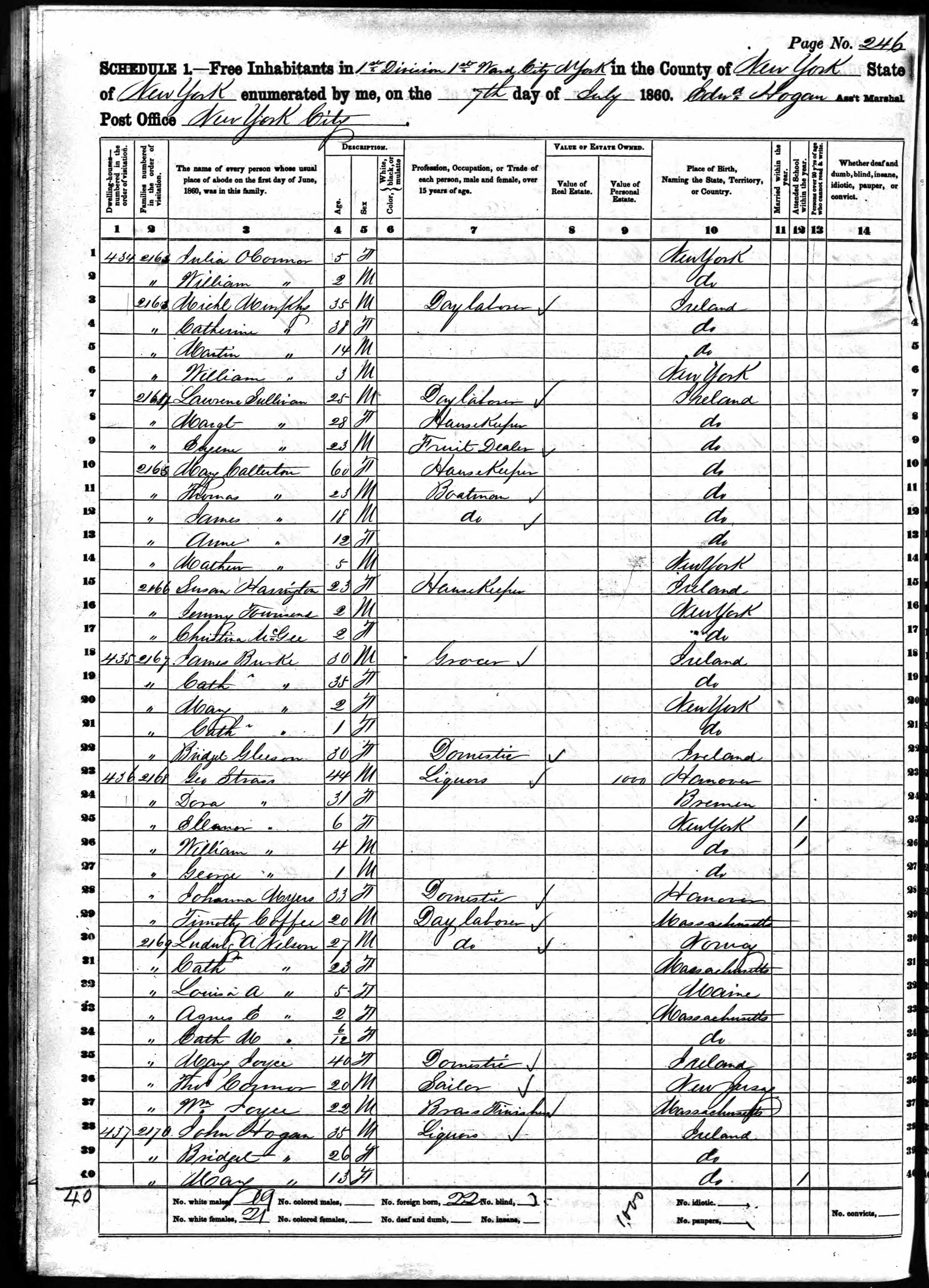 John Hogan; 1860 Census (I)