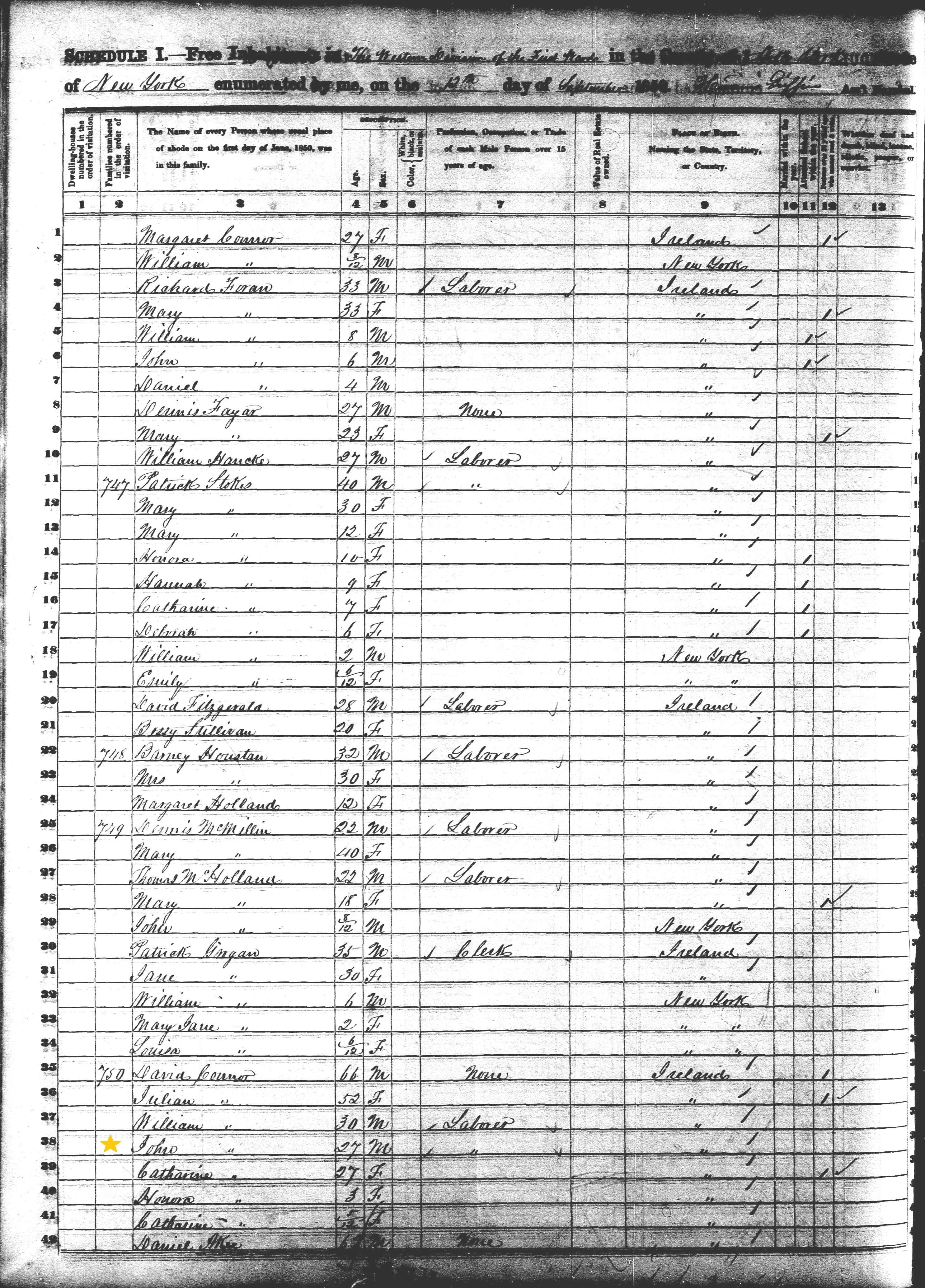 John and Margaret O'Connor; 1850 Census