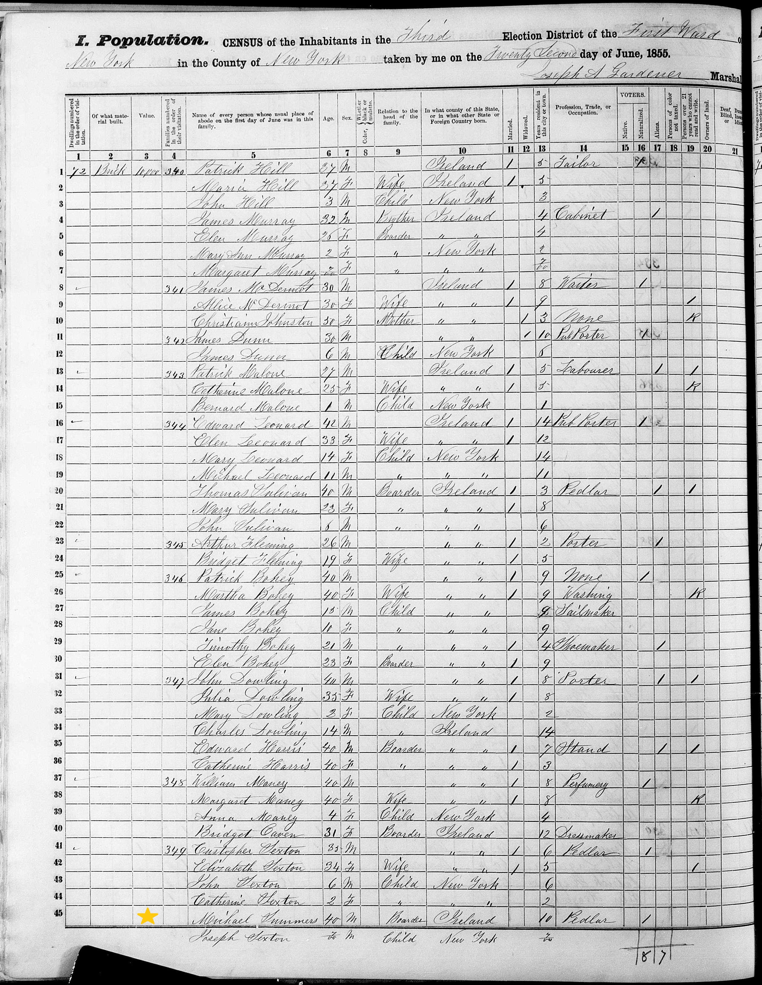 Michael Somers; 1855 Census