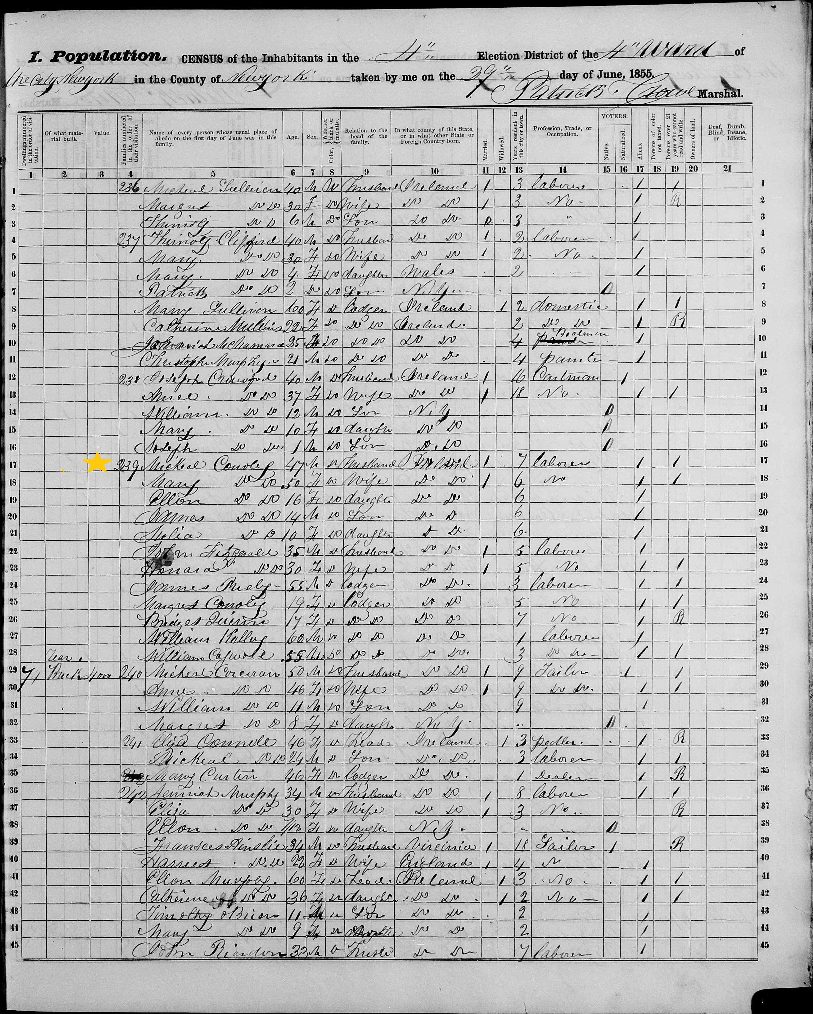 Michael Connell; 1855 Census