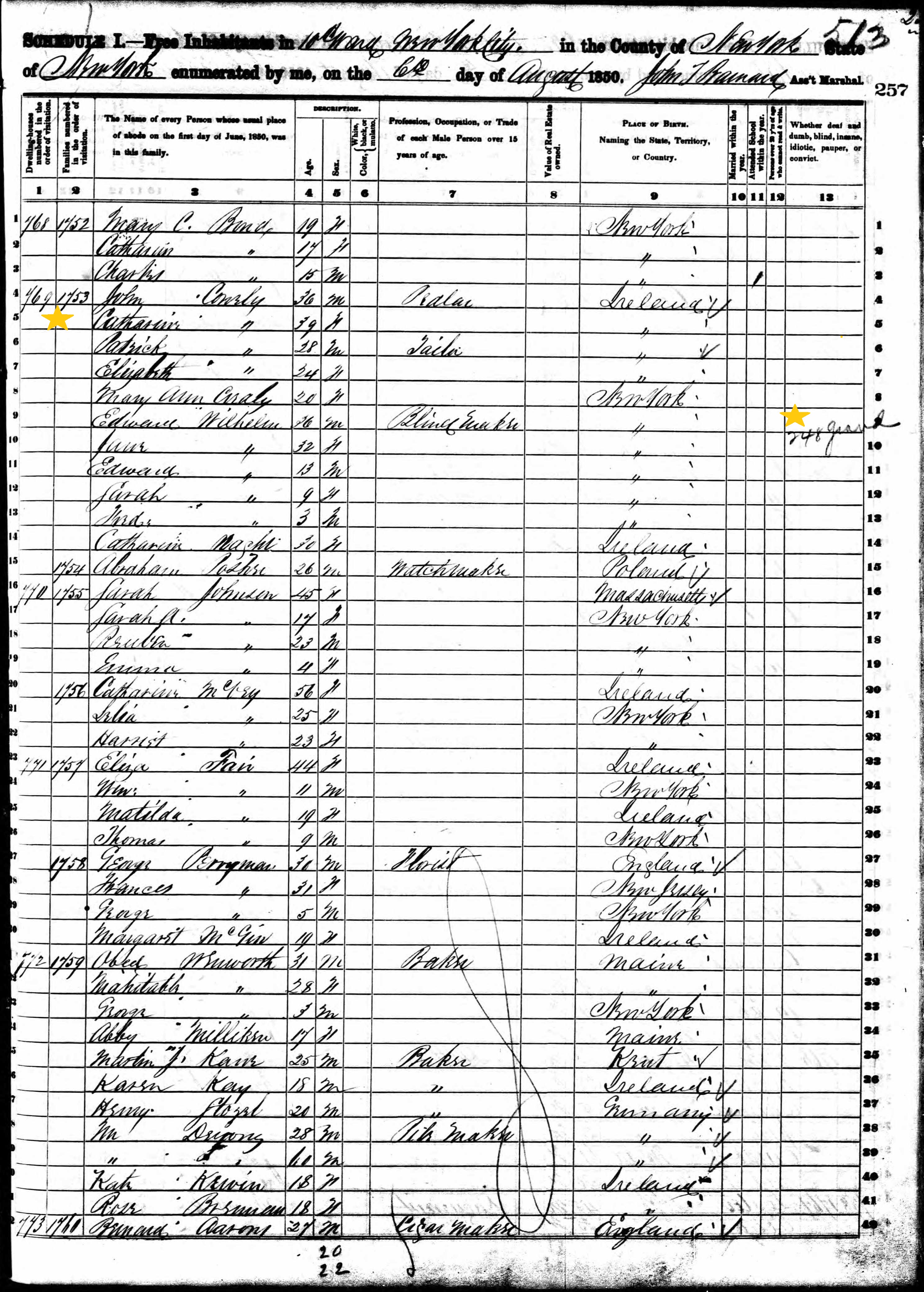John Connolly; 1850 Census