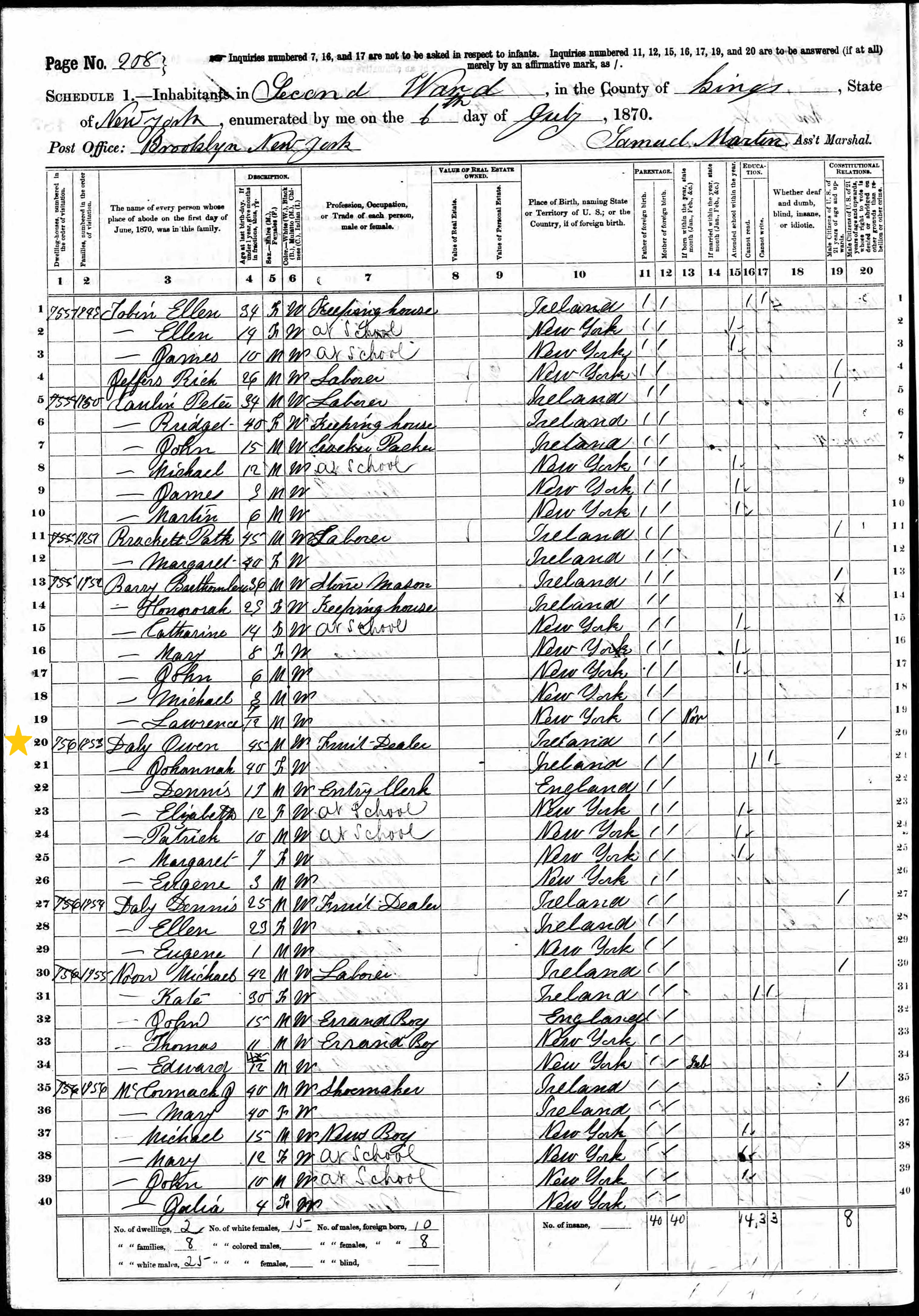 Owen Daley; 1870 Census