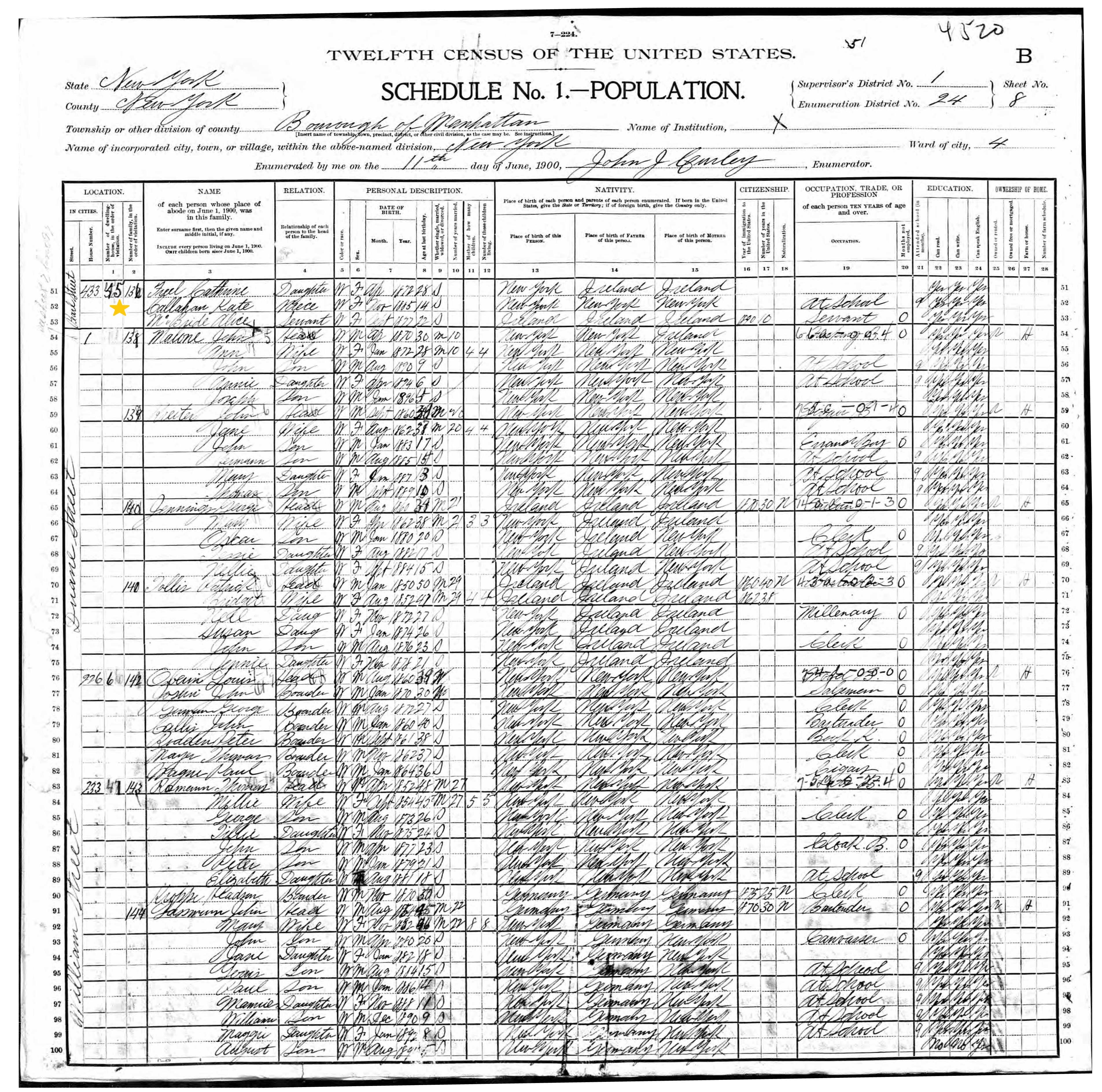 Hugh Freel; 1900 Census (2)
