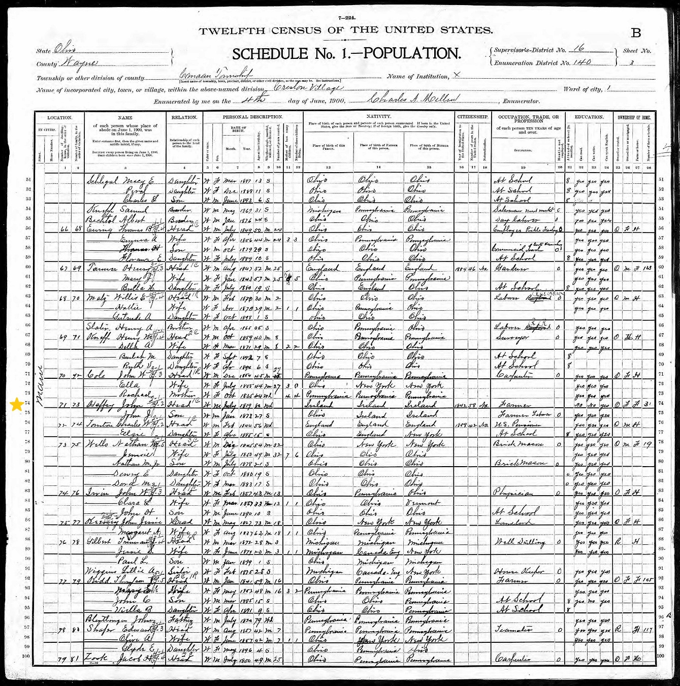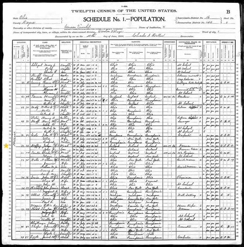 John Haffey; 1900 Census