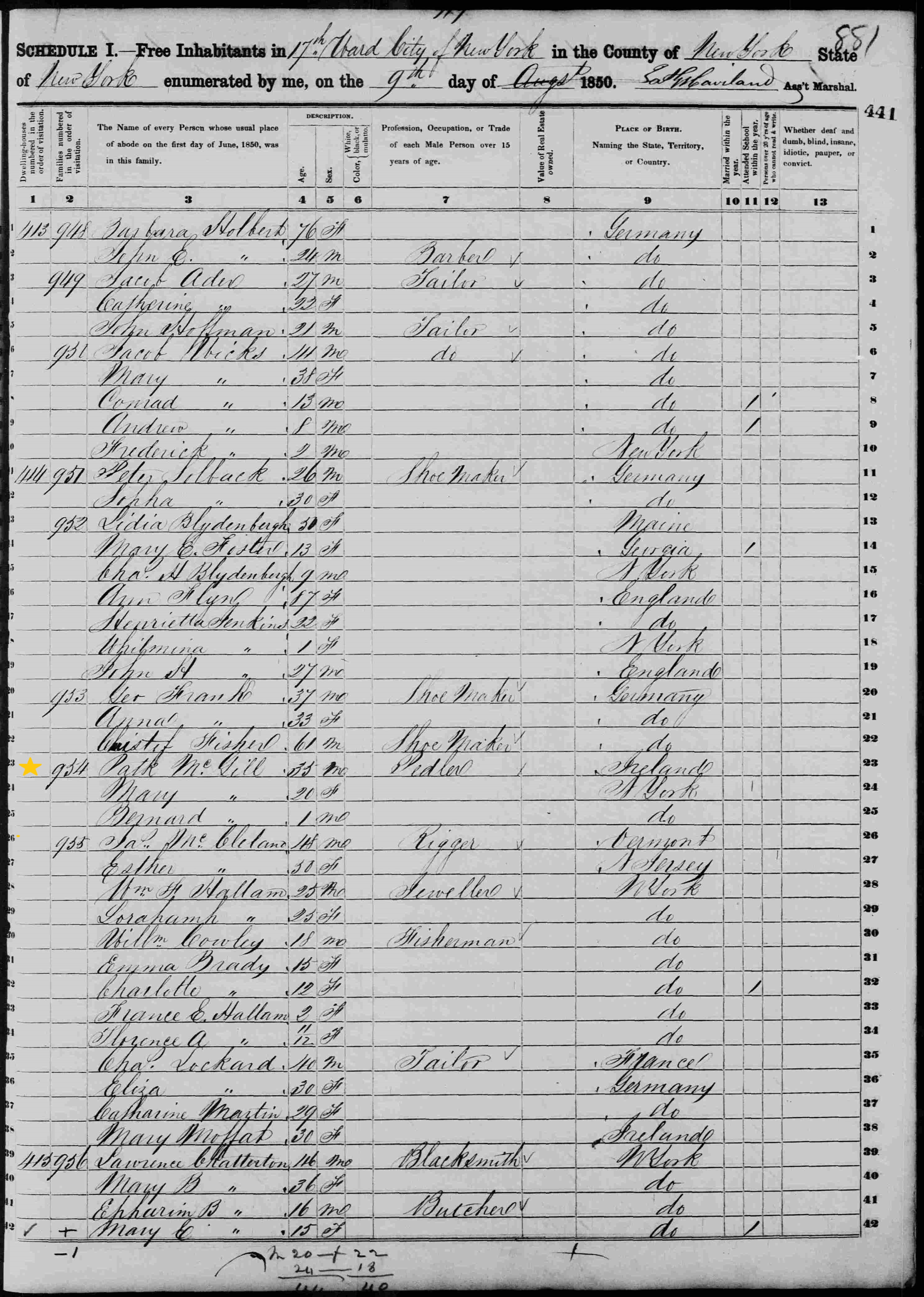 Patrick McGill; 1850 Census