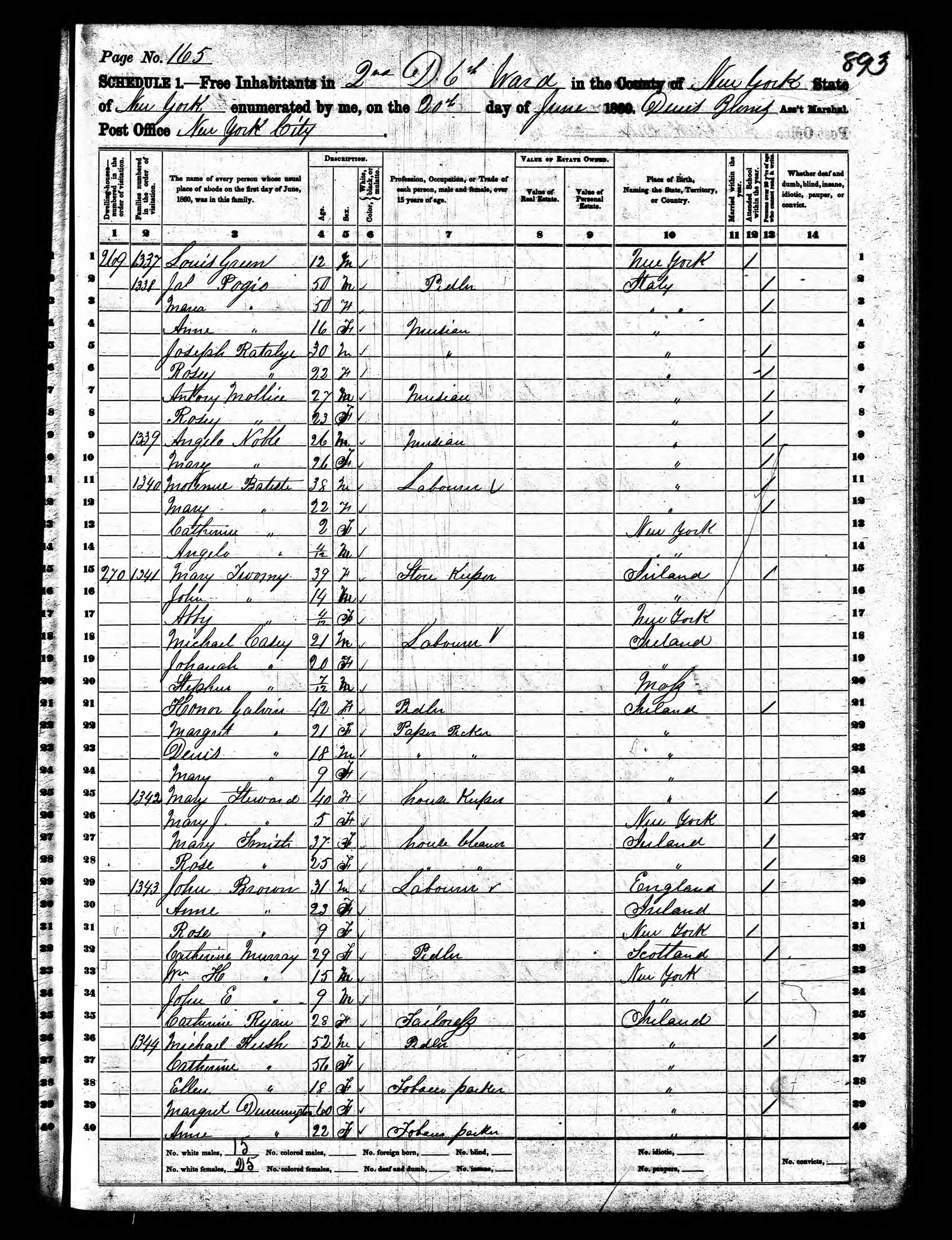 Cornelius Twomey does not appear on this census document. It is likely that Twomey was out of town peddling his wares during this time.