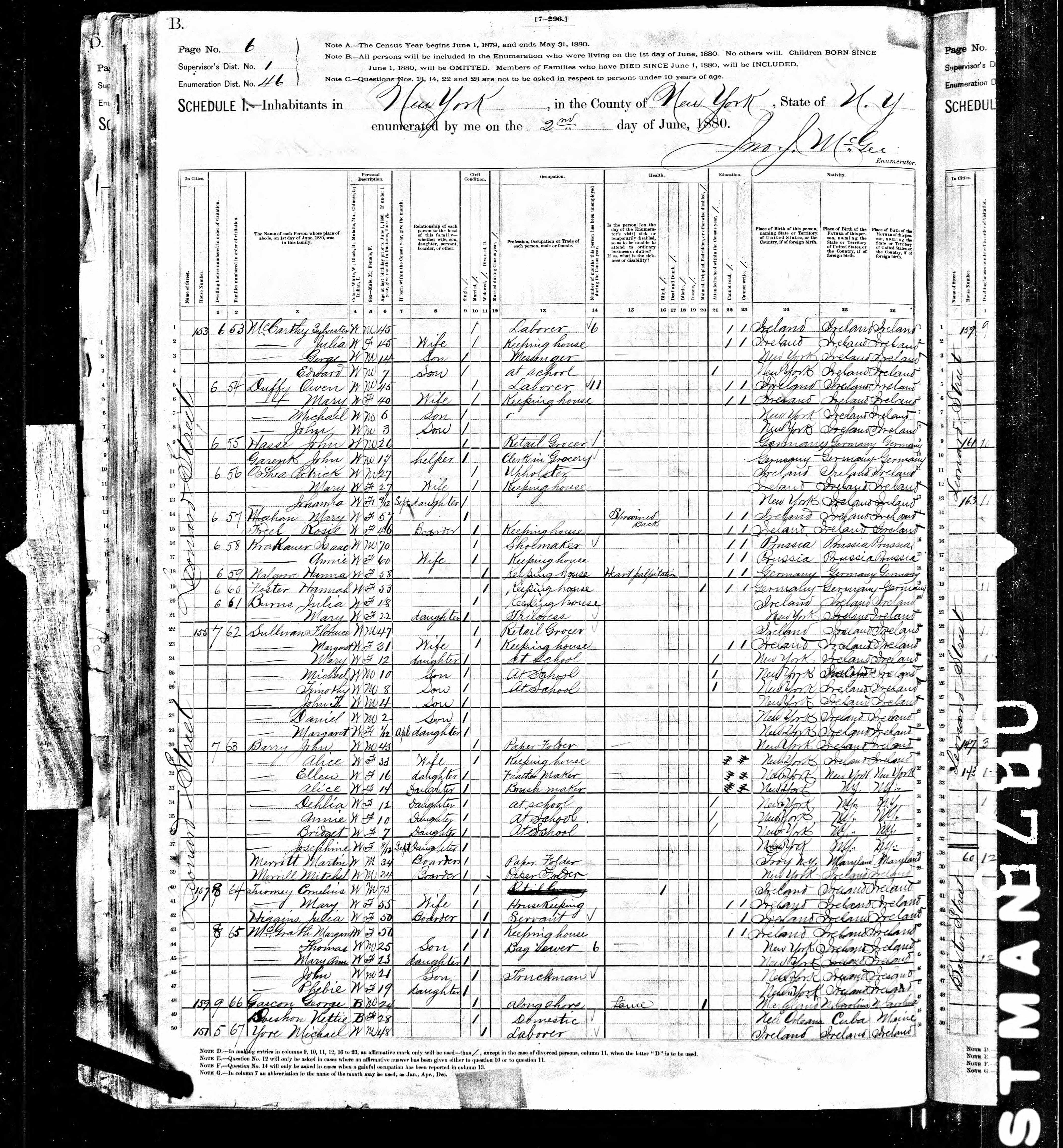 Cornelius Twomey; 1880 Census