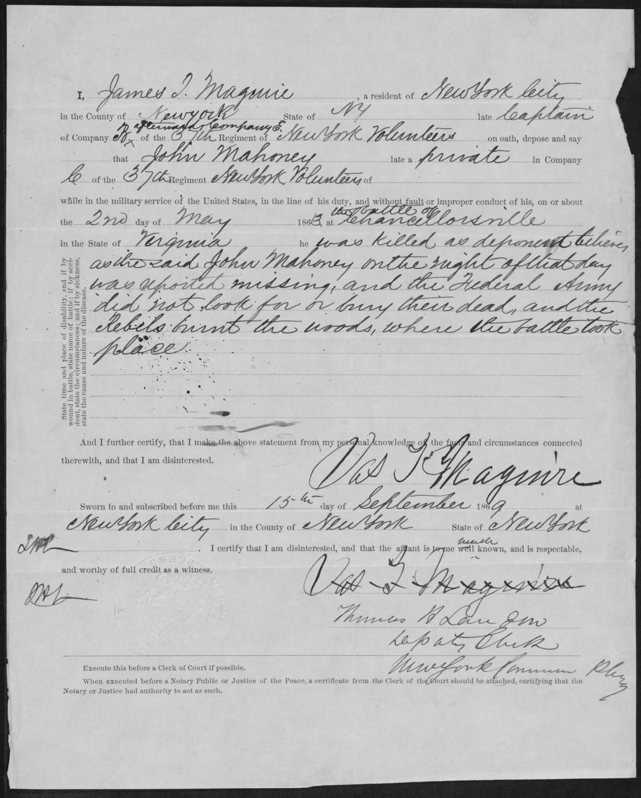 James T. Maguire Affidavit for John Mahoney